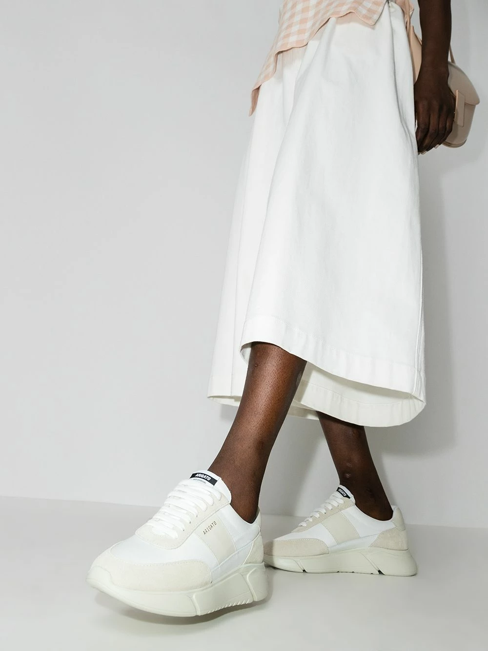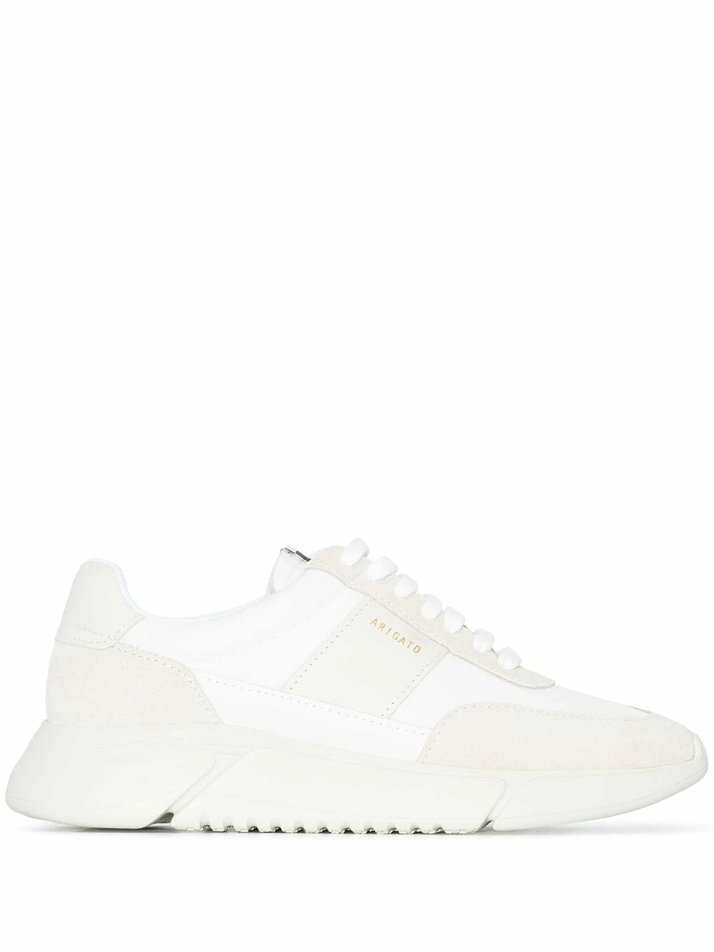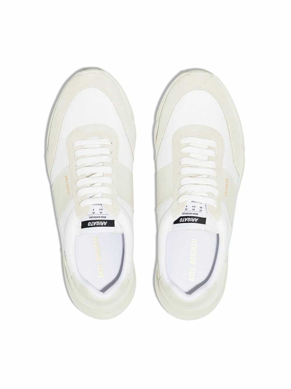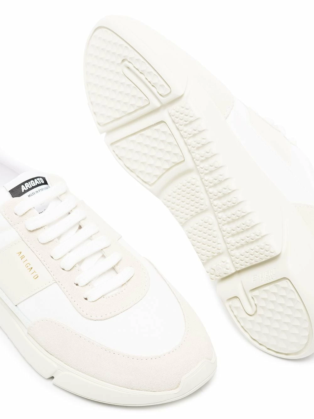 Bout rond, design à empiècements, fermeture à lacer sur le devant, languette à patch logo, semelle intérieure à logo, logo imprimé sur le côté, semelle crantée en caoutchouc. Couleur : blanc. Matière : cuir.