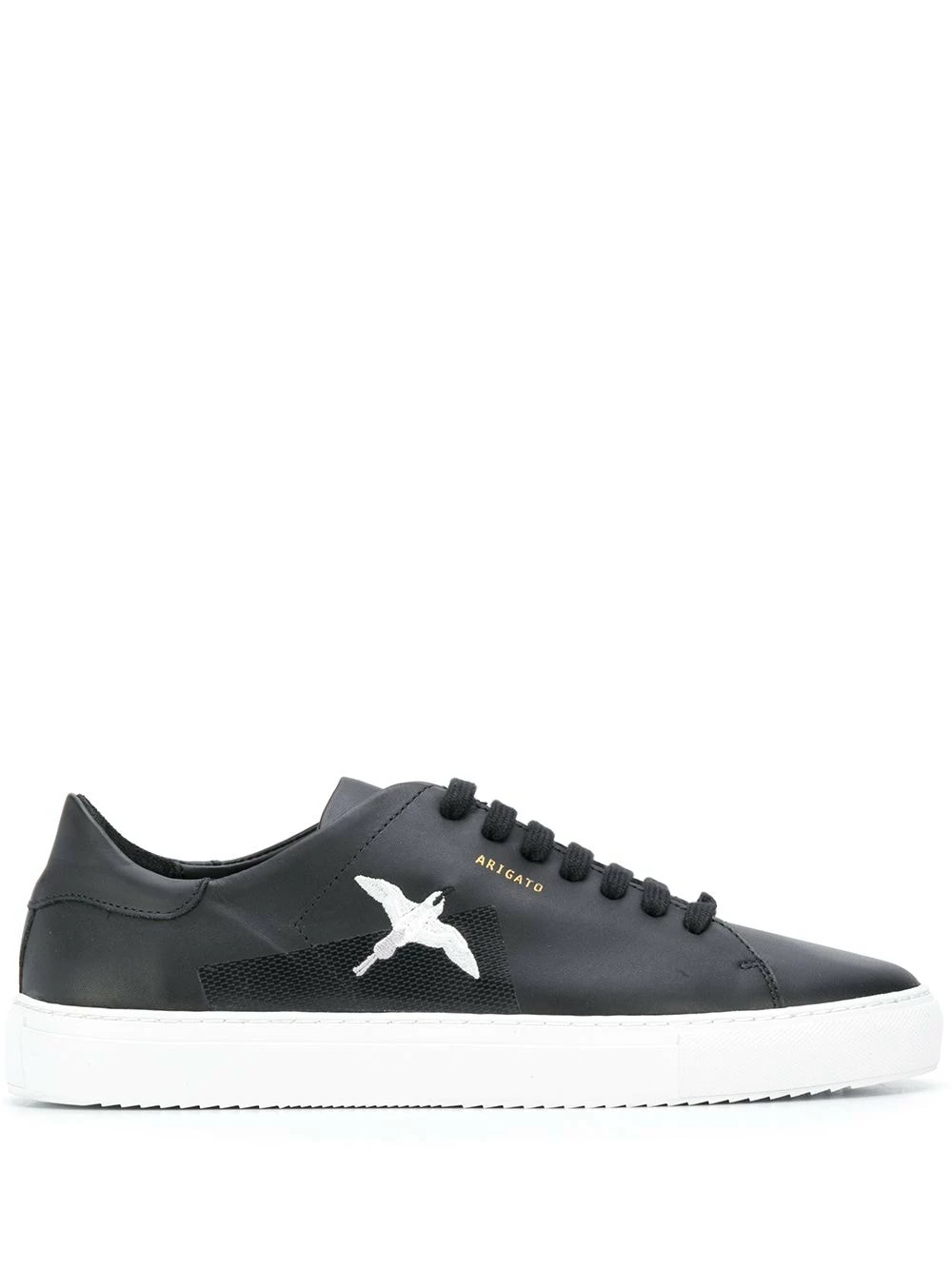 Baskets Clean 90 Axel Arigato avec bout rond, semelle plate, fermeture à lacets et logo imprimé. Couleur : noir.
