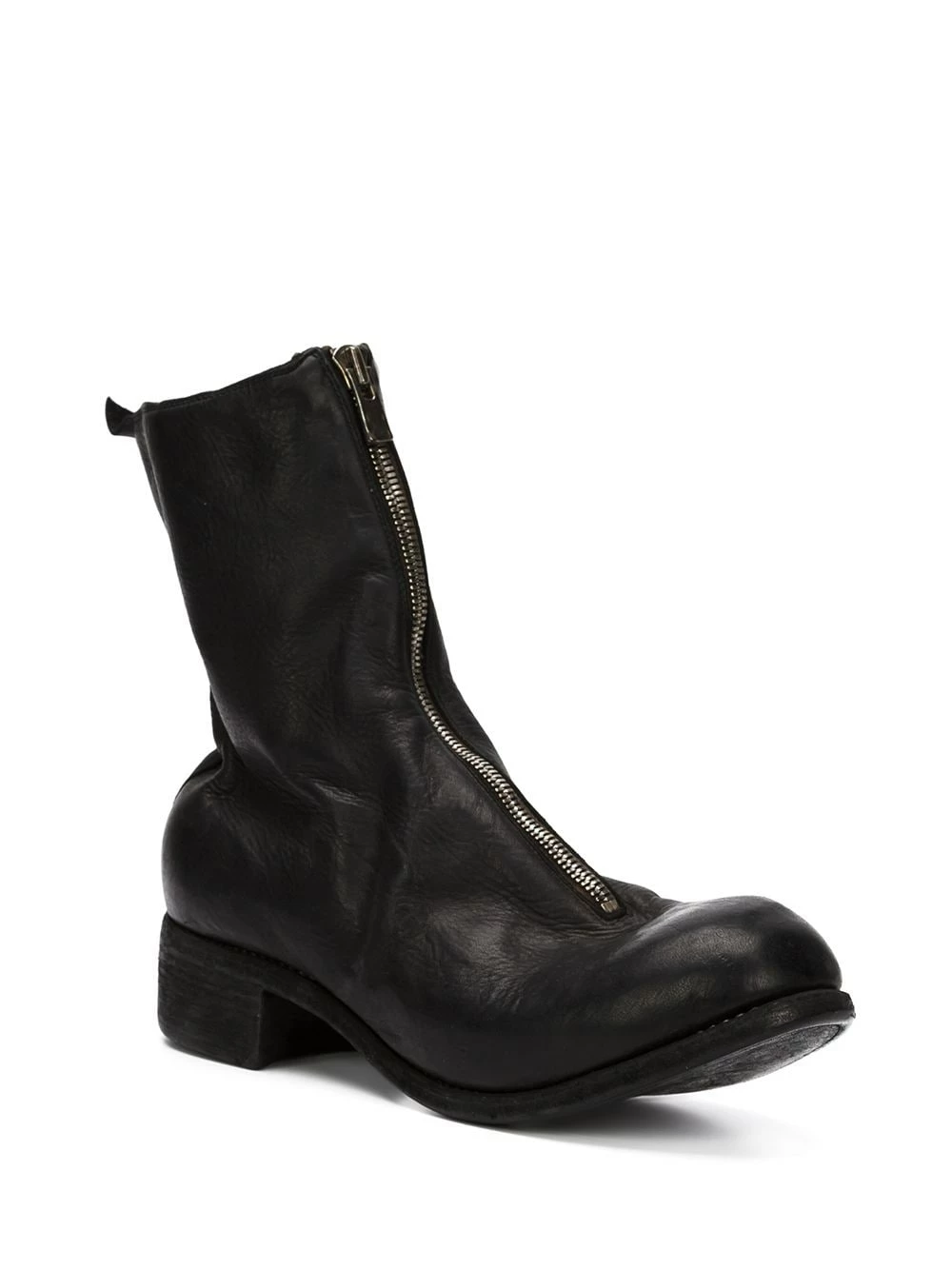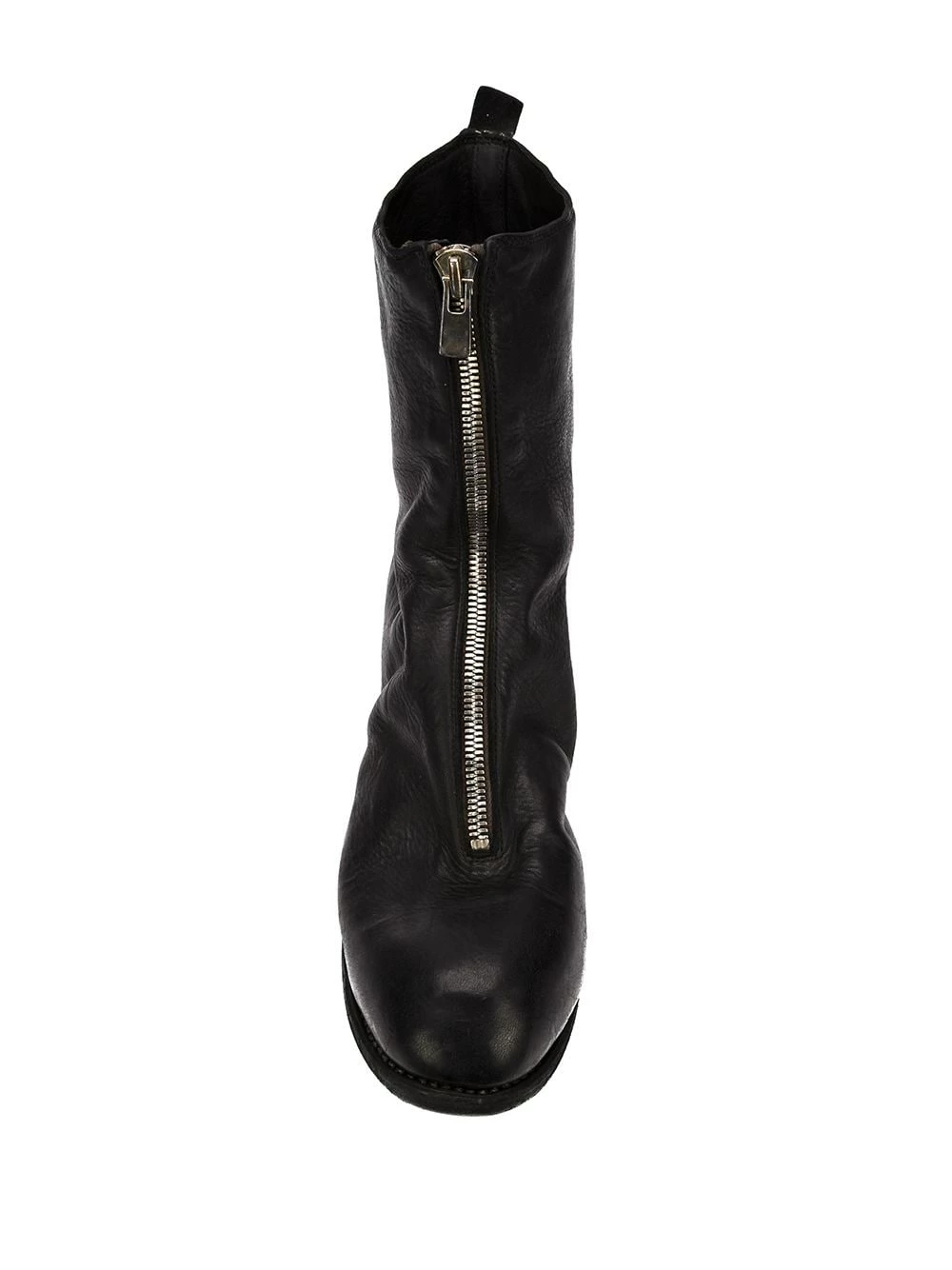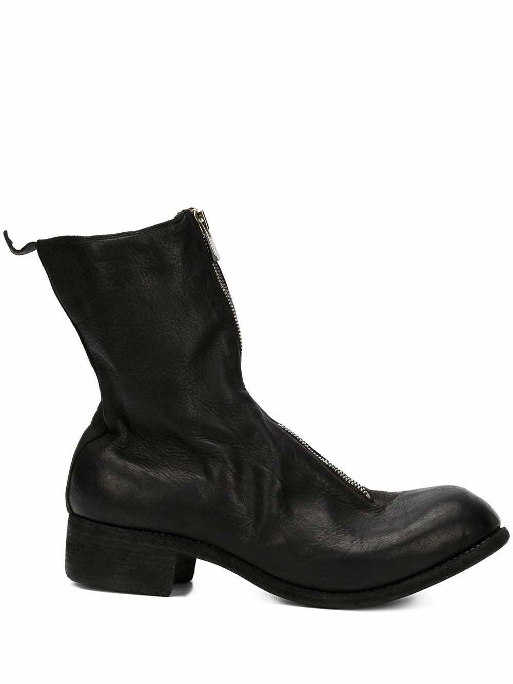 Bottines à effet usé en cuir de cheval noir Guidi.