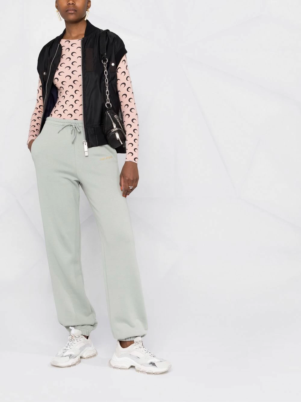 Vert clair, coton, logo imprimé sur le côté, taille élastique à lien de resserrage, deux poches latérales fendues, chevilles élastiques.
