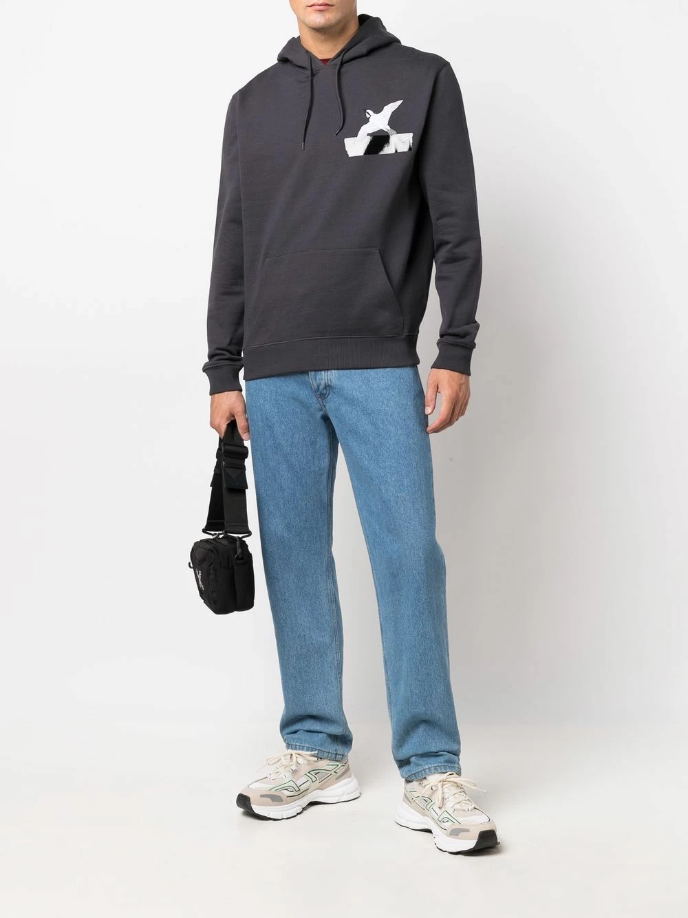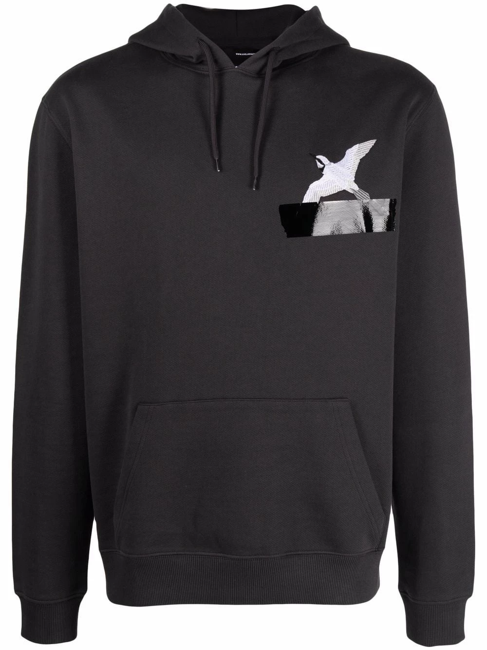 Détail nervuré, logo imprimé à la poitrine, capuche à lien de resserrage, manches longues, poche plaquée. Couleur : gris. MatiÚre : coton biologique.