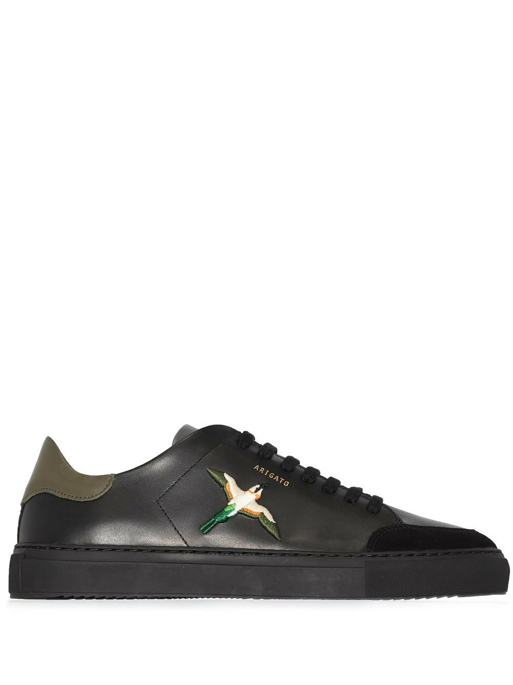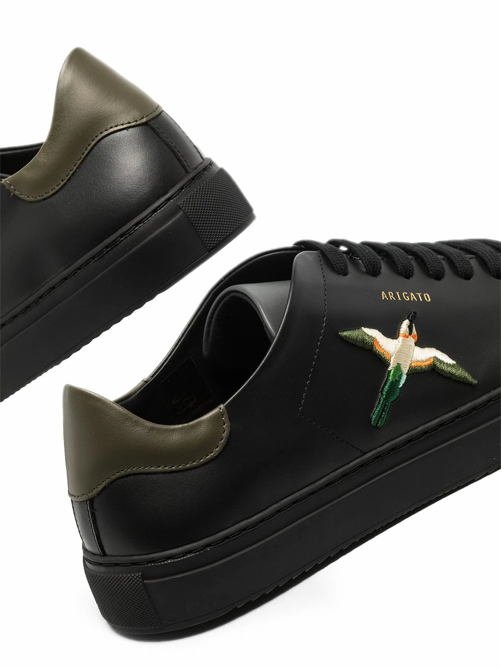 Motif brodé, logo embossé sur le côté, semelle intérieure à logo, contrefort contrastant, bout rond, fermeture à lacer sur le devant, semelle plate en caoutchouc. Couleur : noir. Matière : cuir.