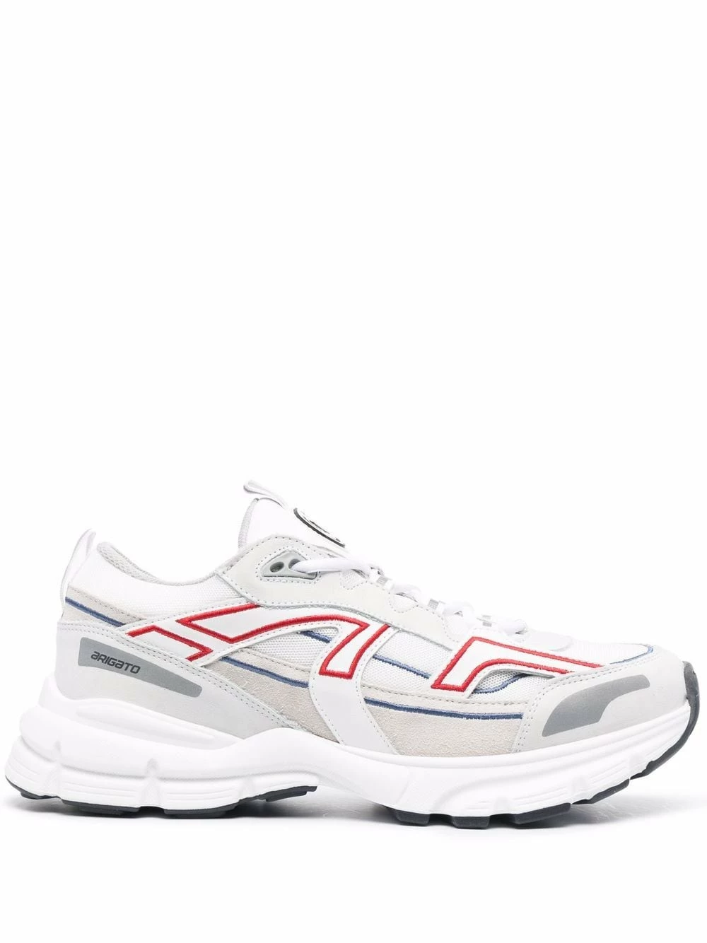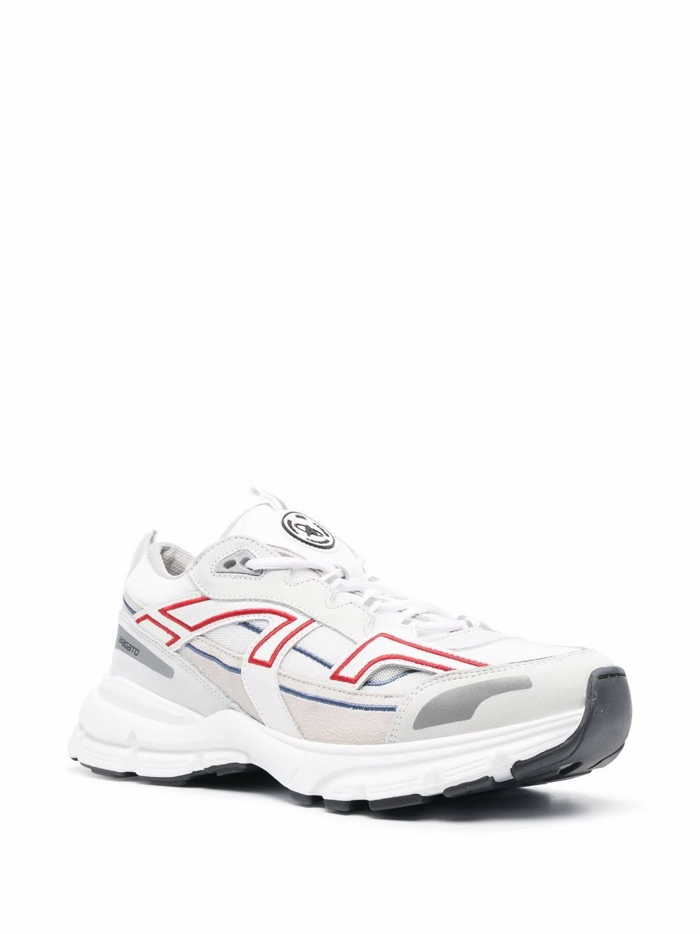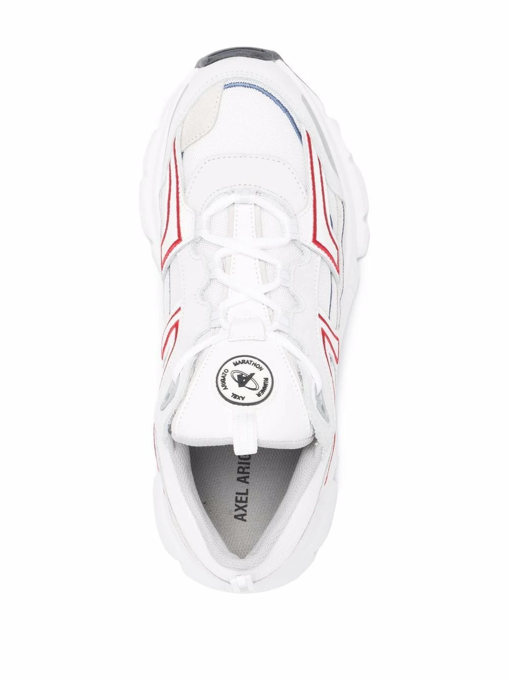 Design à empiècements, bout rond, fermeture à lacer sur le devant, languette à patch logo, semelle épaisse en caoutchouc. Matière : cuir.