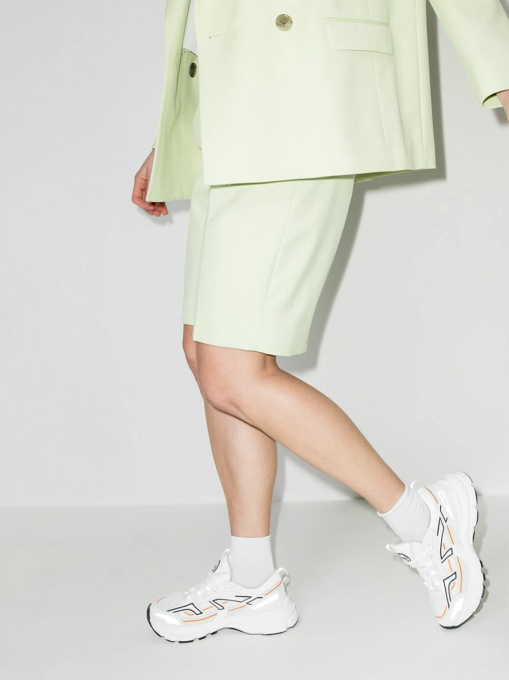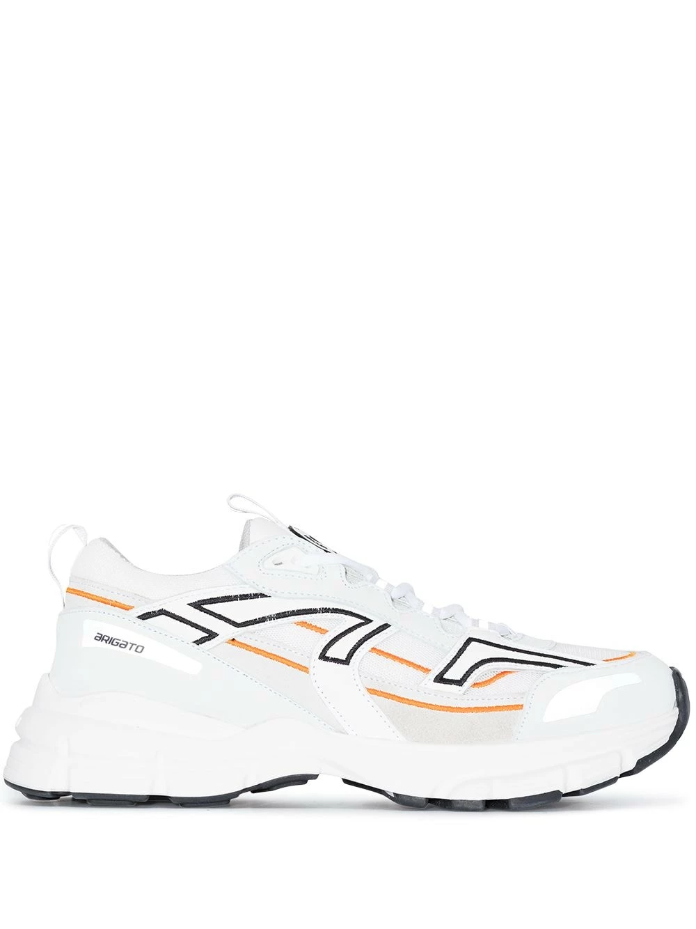 Broderies, languette à patch logo, ouverture à double languette, bout rond, fermeture à lacer sur le devant, semelle épaisse en caoutchouc. Couleur : blanc. MatiÚre : cuir.