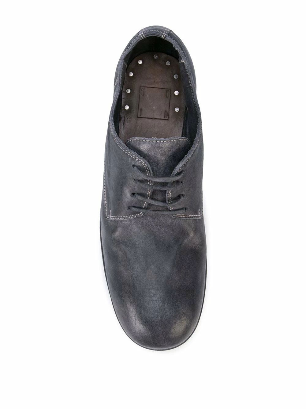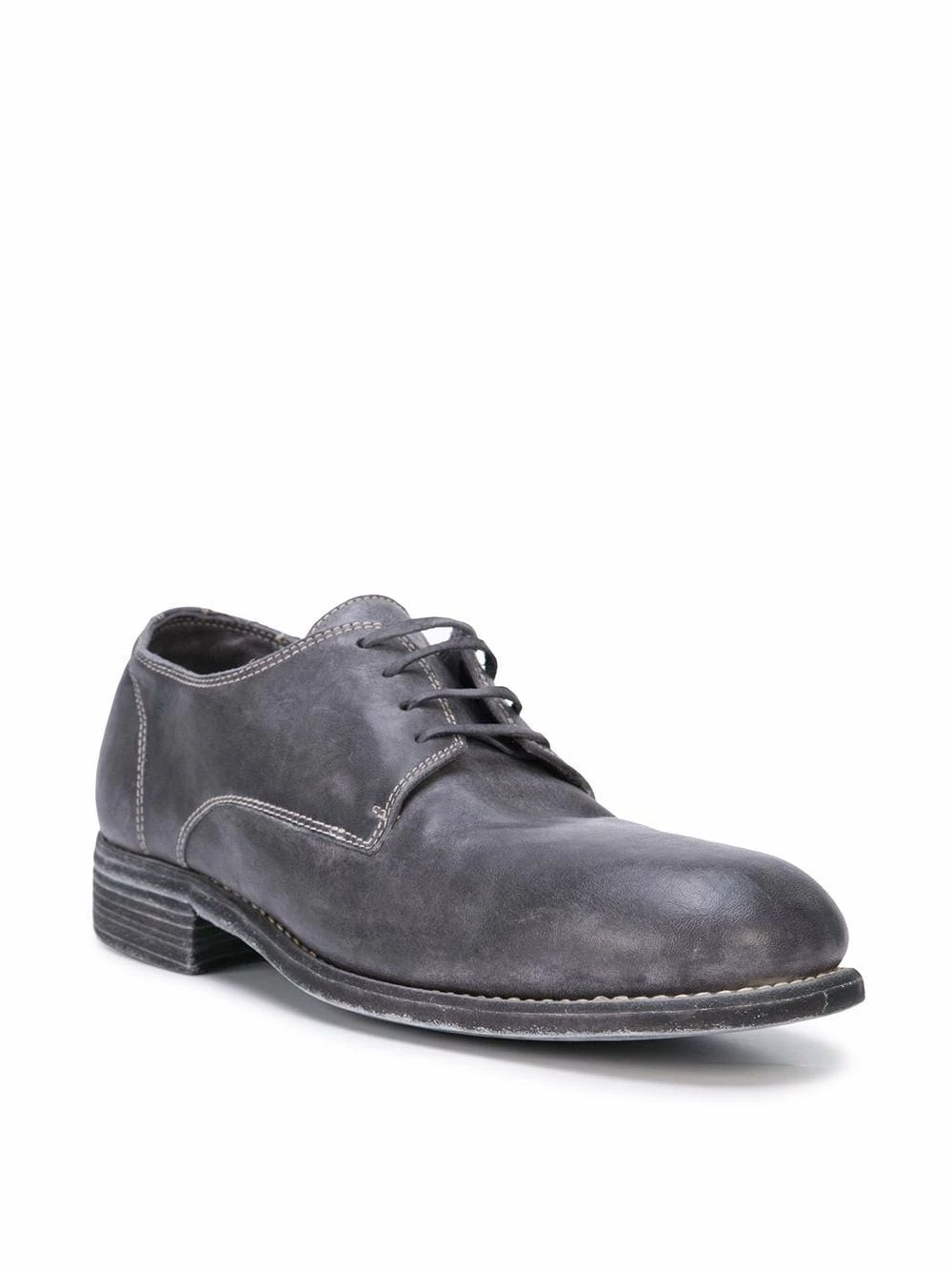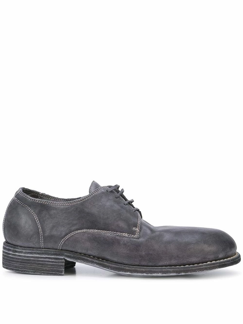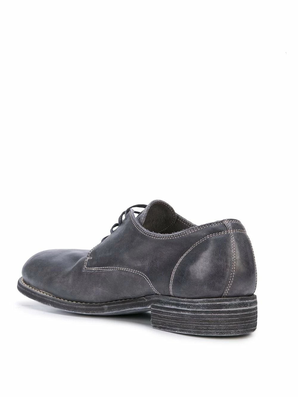 Derbies classiques en cuir de cheval Guidi avec bout rond, fermeture à lacer sur le devant et talon plat. Couleur : bleu.