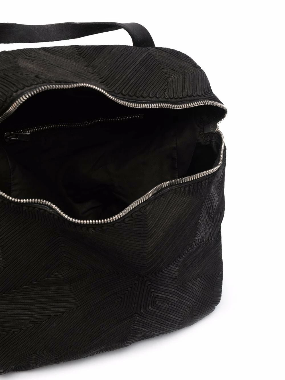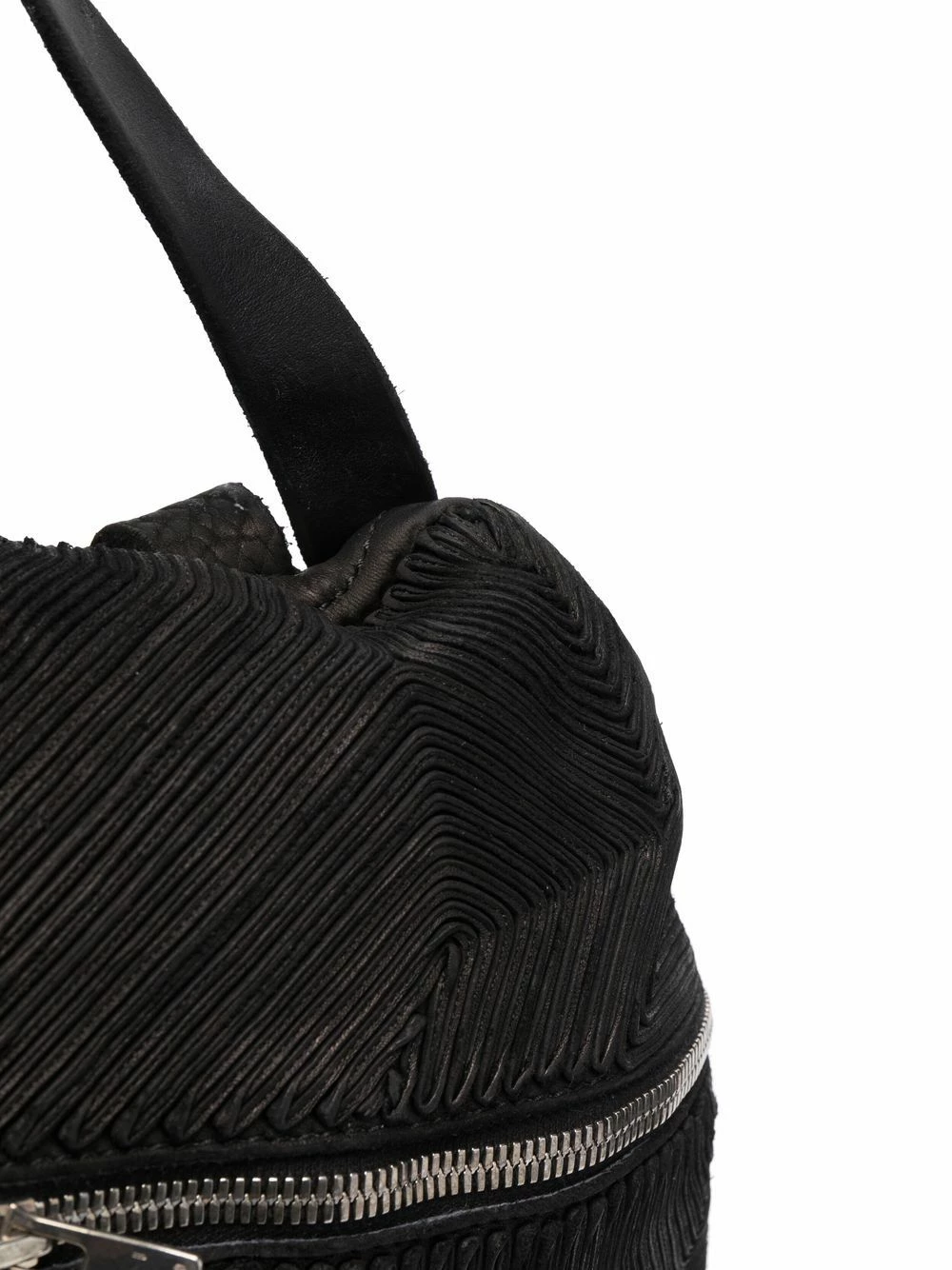 Fini texturé, anse plate sur le dessus, brides porté épaule ajustables, fermeture zippée devant, poche intérieure zippée. Couleur : noir. Matière : cuir.