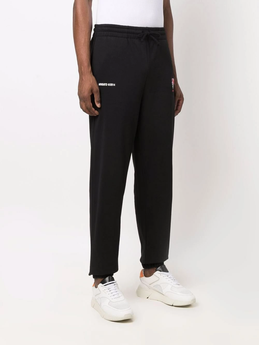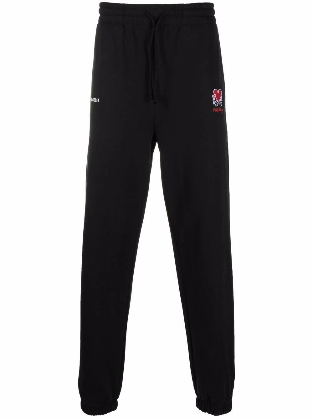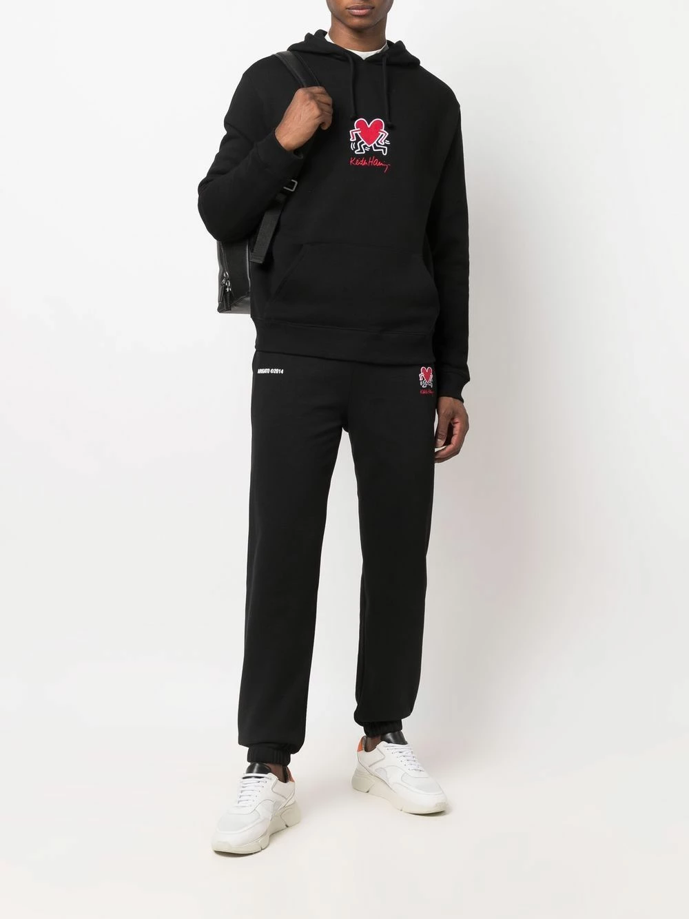 Patch cœur, ceinture élastique, fermeture à lien de resserrage, poches latérales fendues, chevilles élastiques. Couleur : noir. Matière : coton.
