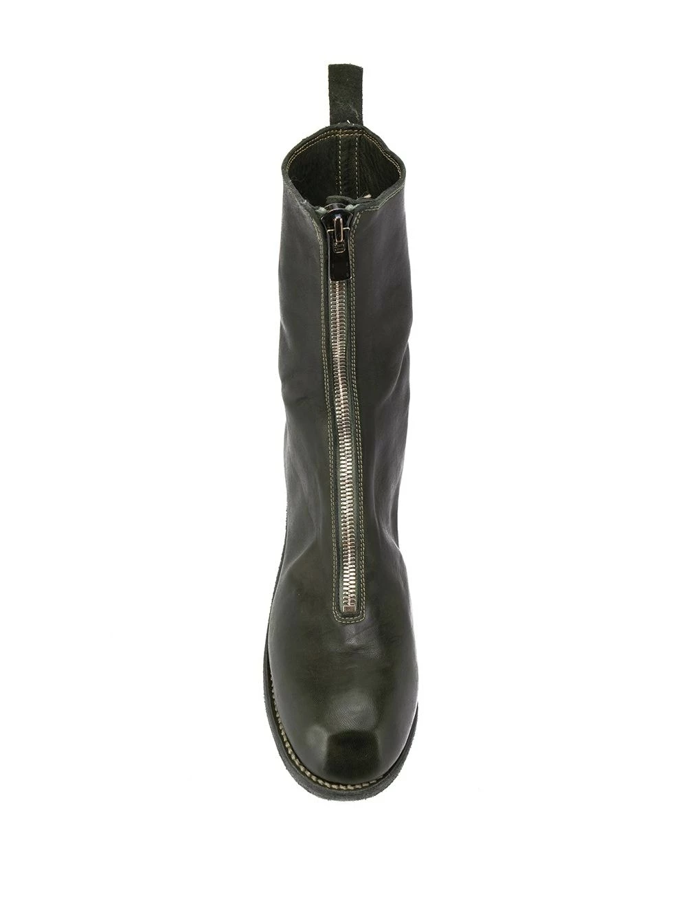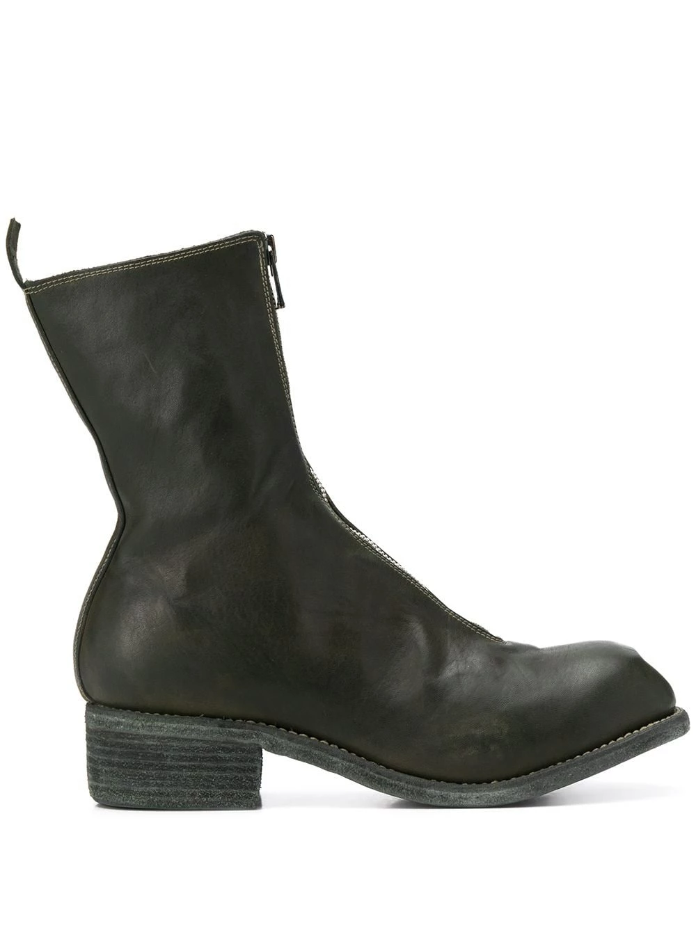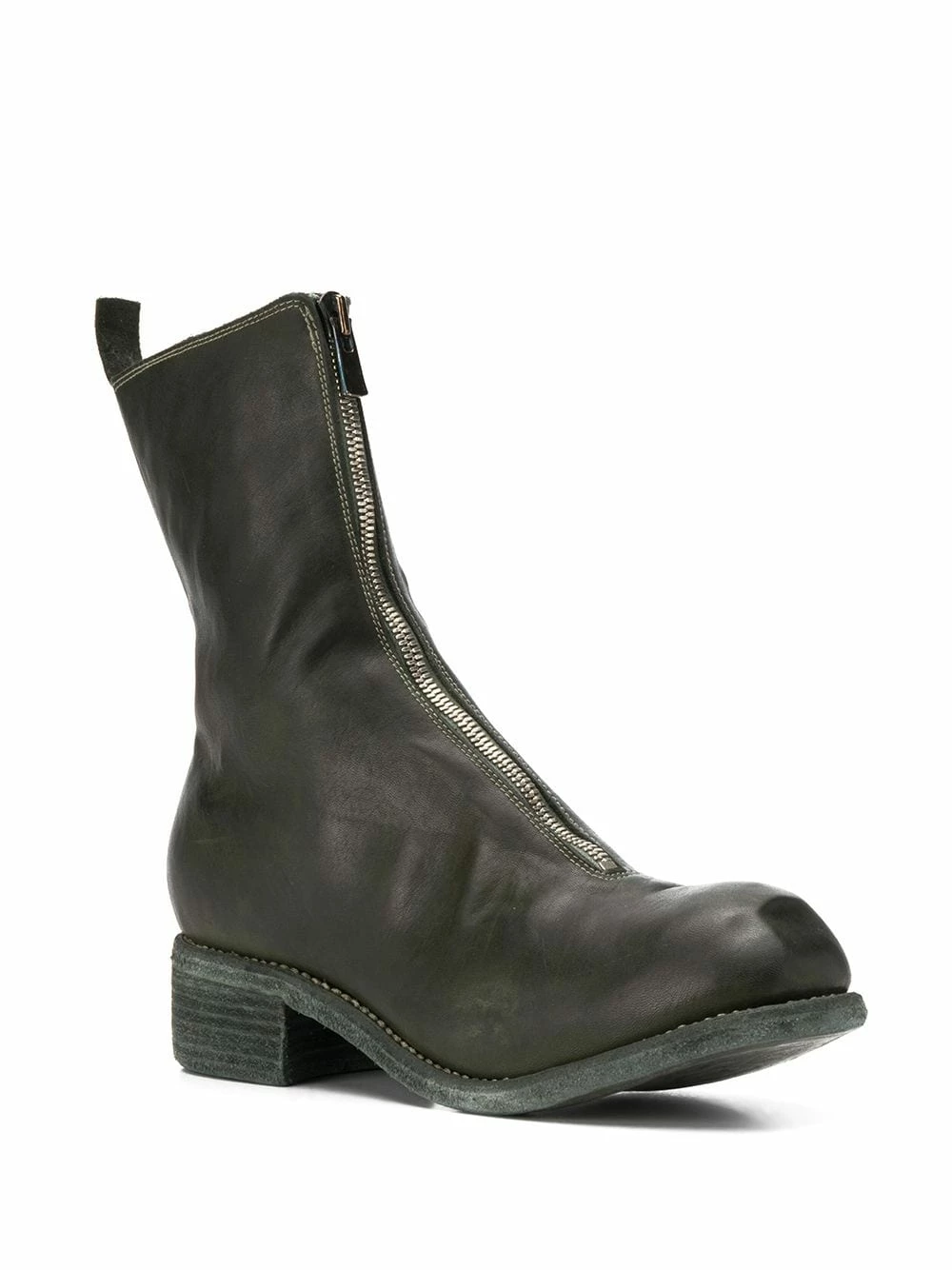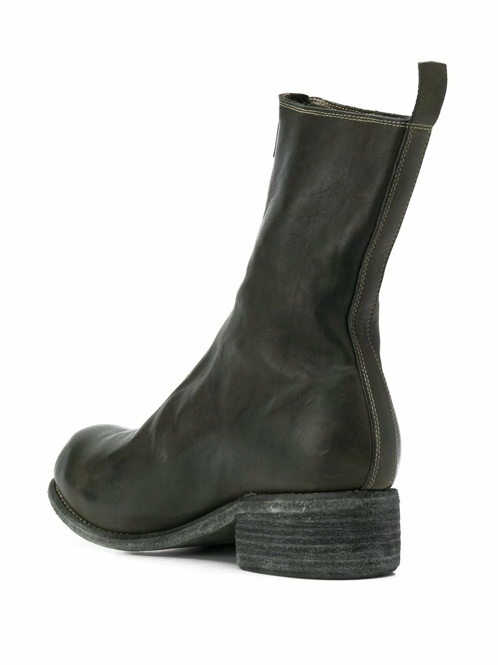 Bottines à fermeture zippée en cuir Guidi avec bout rond, fermeture zippée devant, languette arrière et petit talon épais.