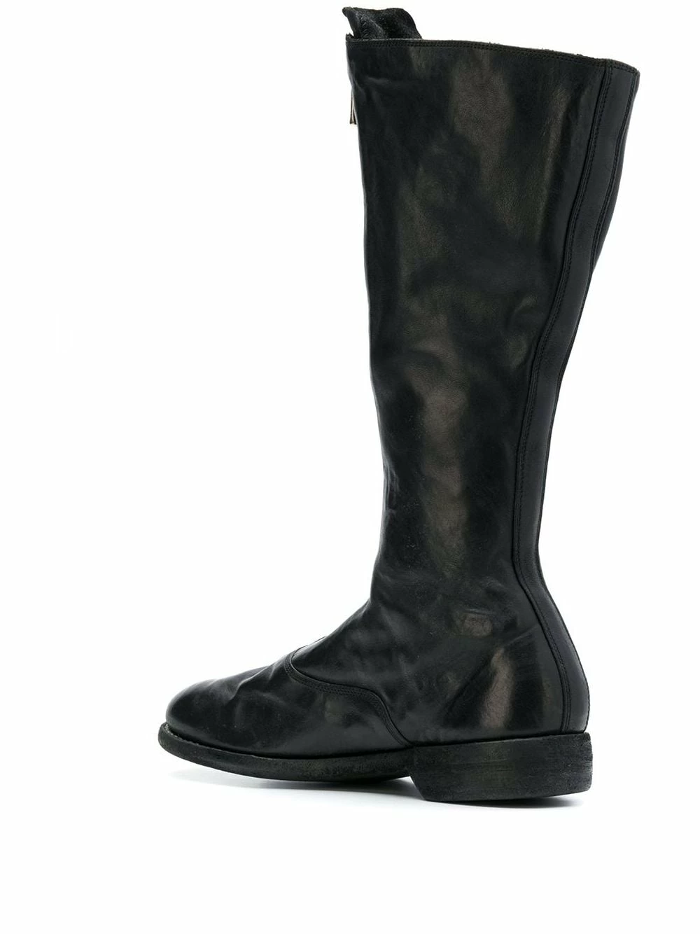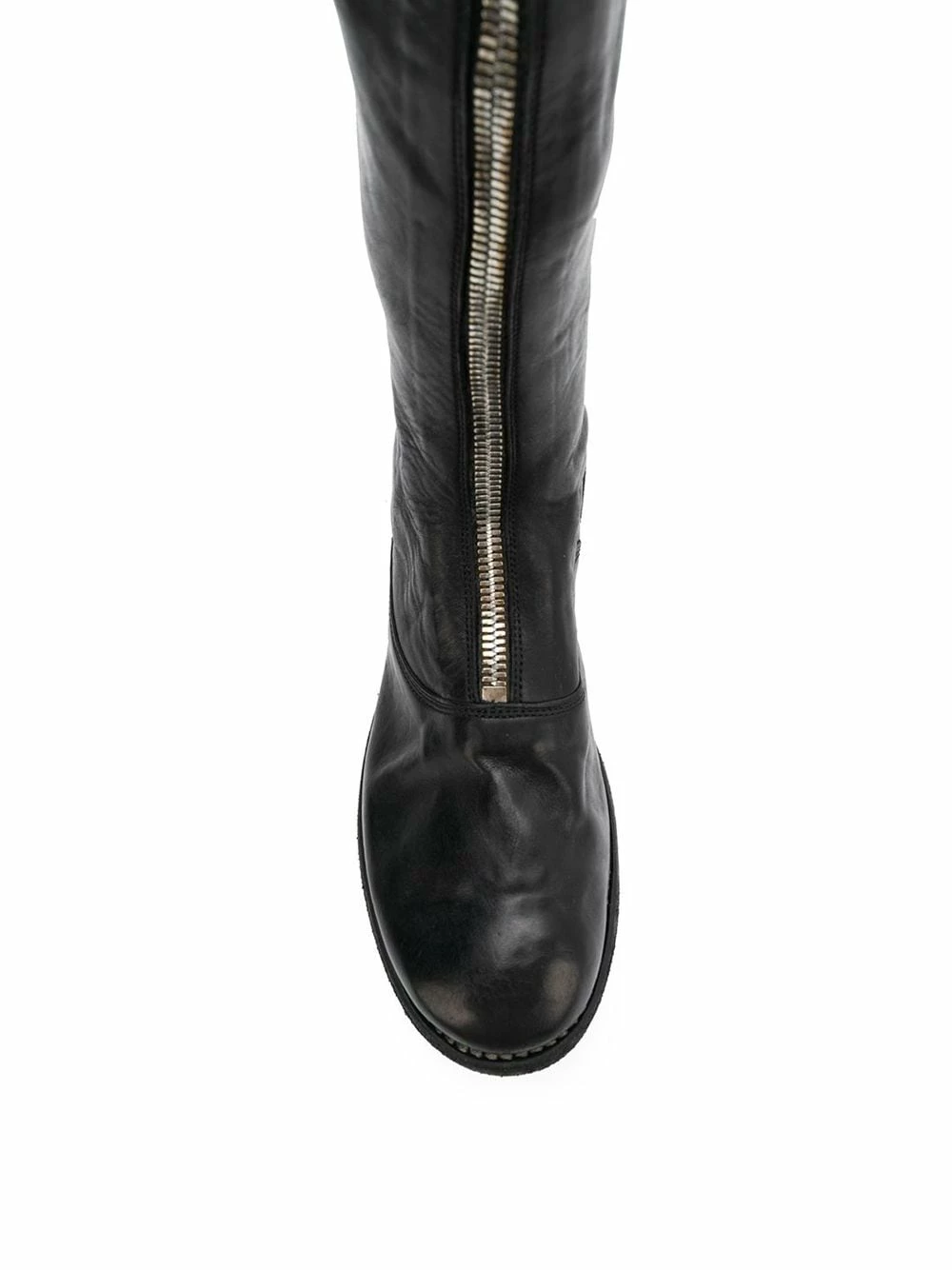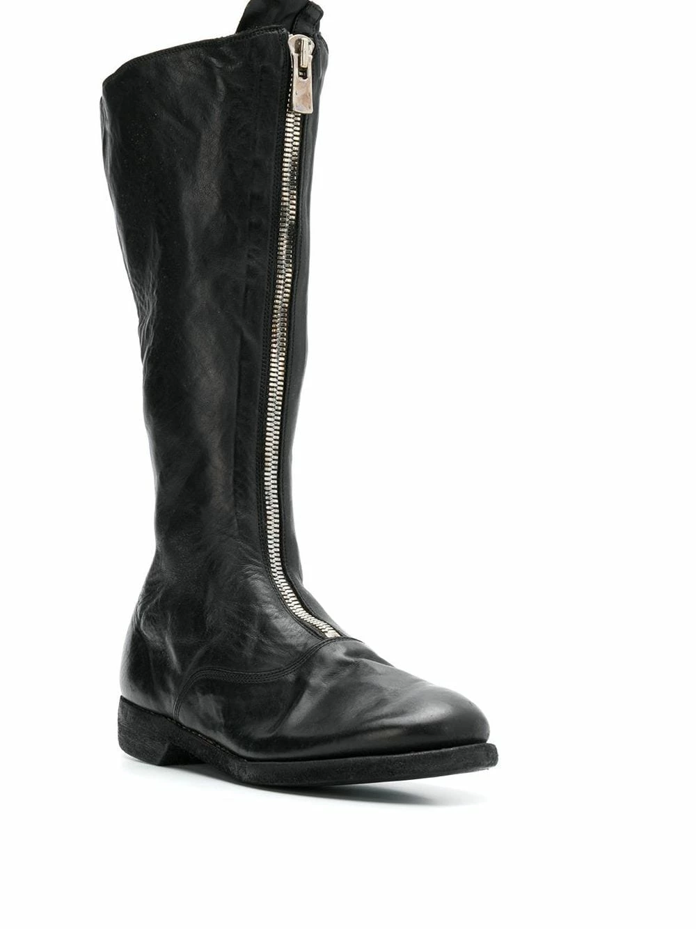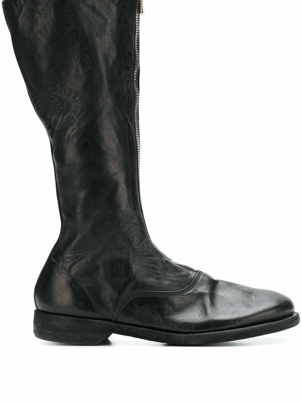 Front zip boots en cuir Guidi avec petit talon, Hauteur mi-mollet, fermeture zippée devant et bout rond. Couleur : noir.