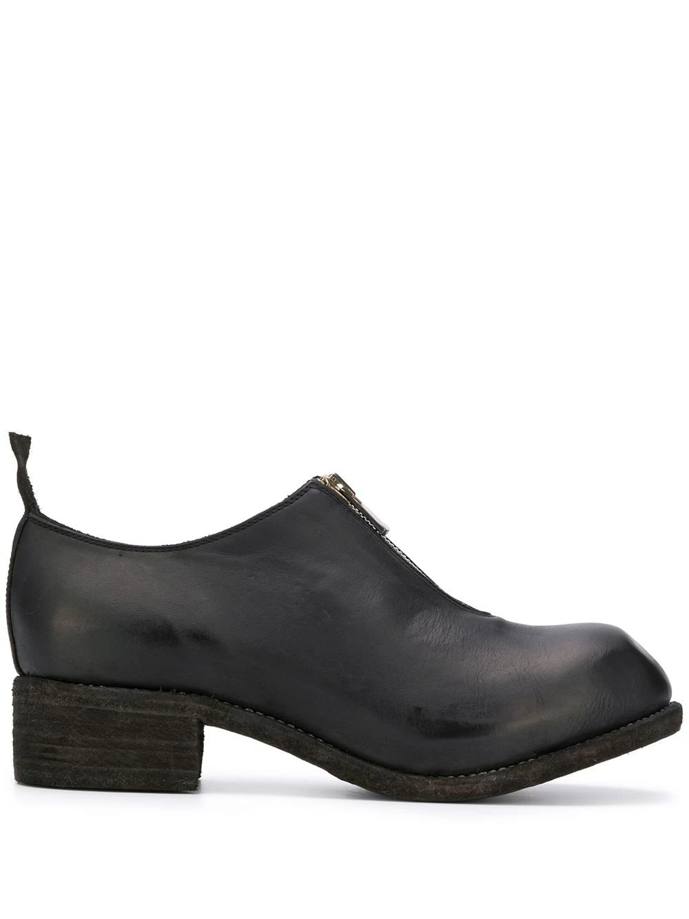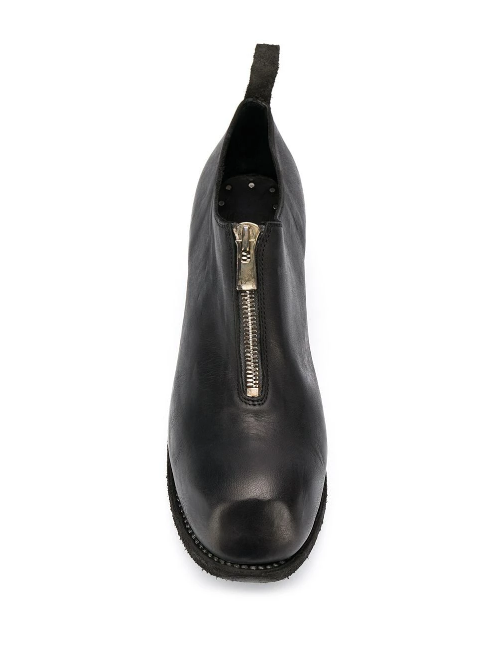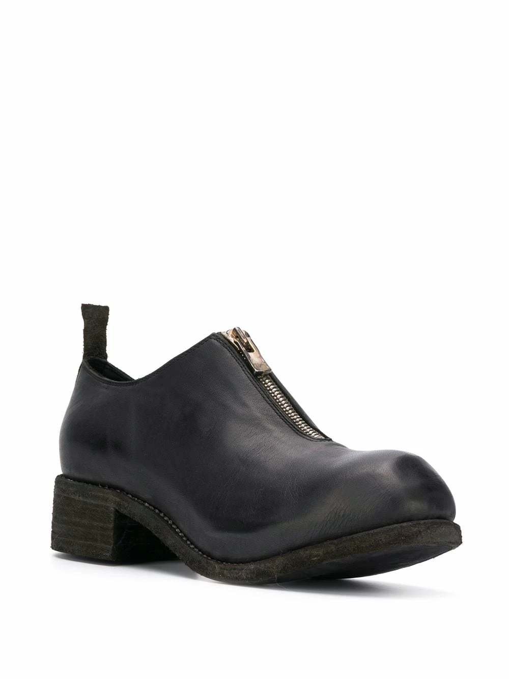 Sabots zippés en cuir Guidi avec languette arrière, fermeture zippée devant et bout rond. Couleur : noir.