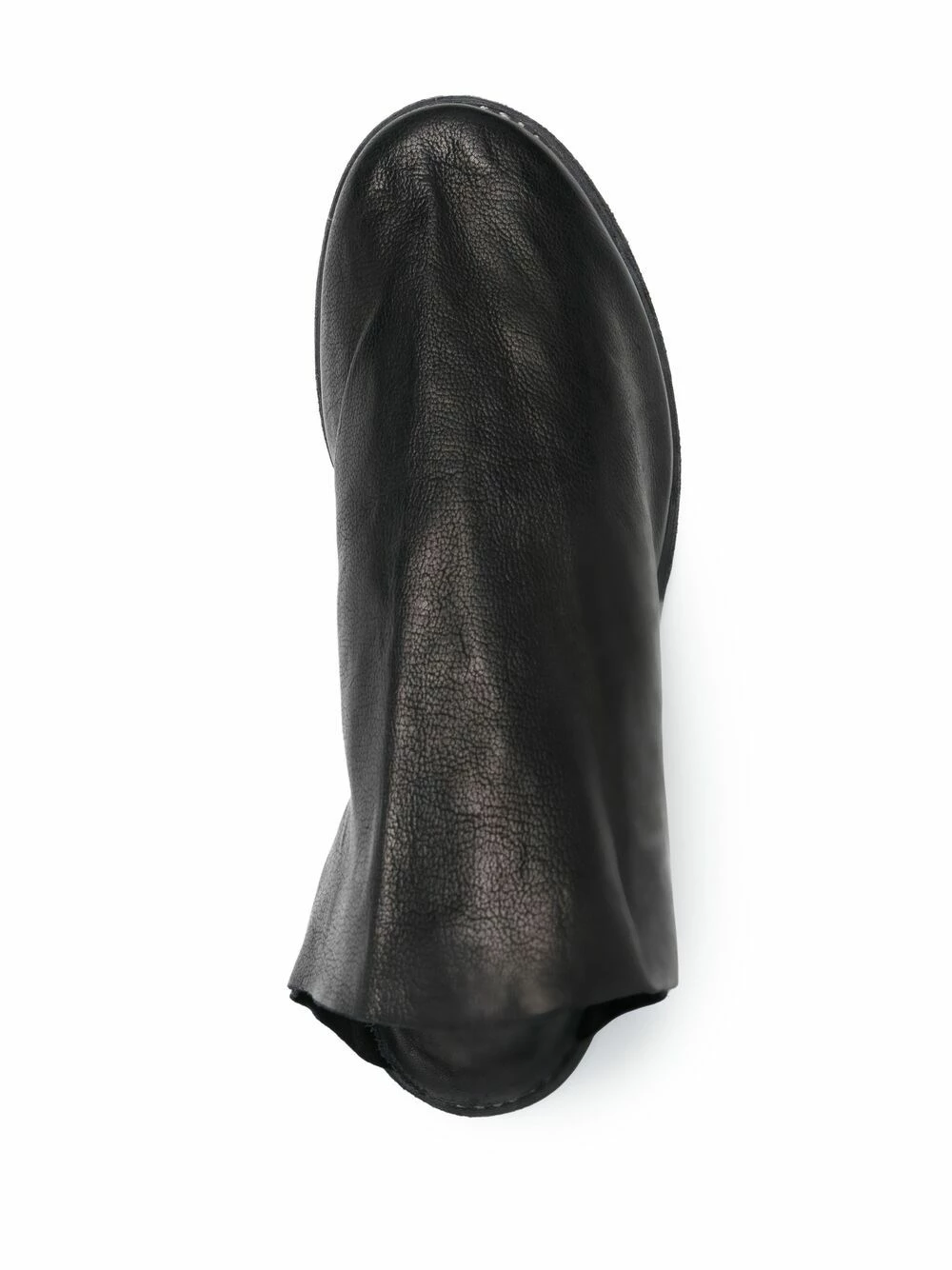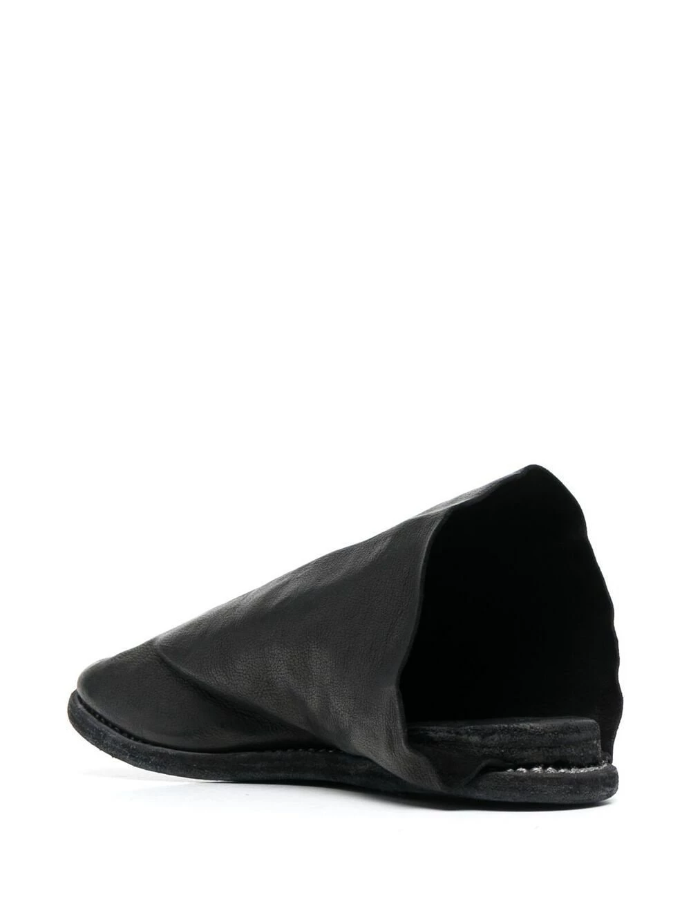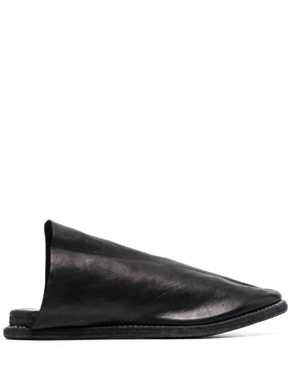 Design à enfiler, bout rond, talon ouvert. Couleur : noir. Matière : cuir.