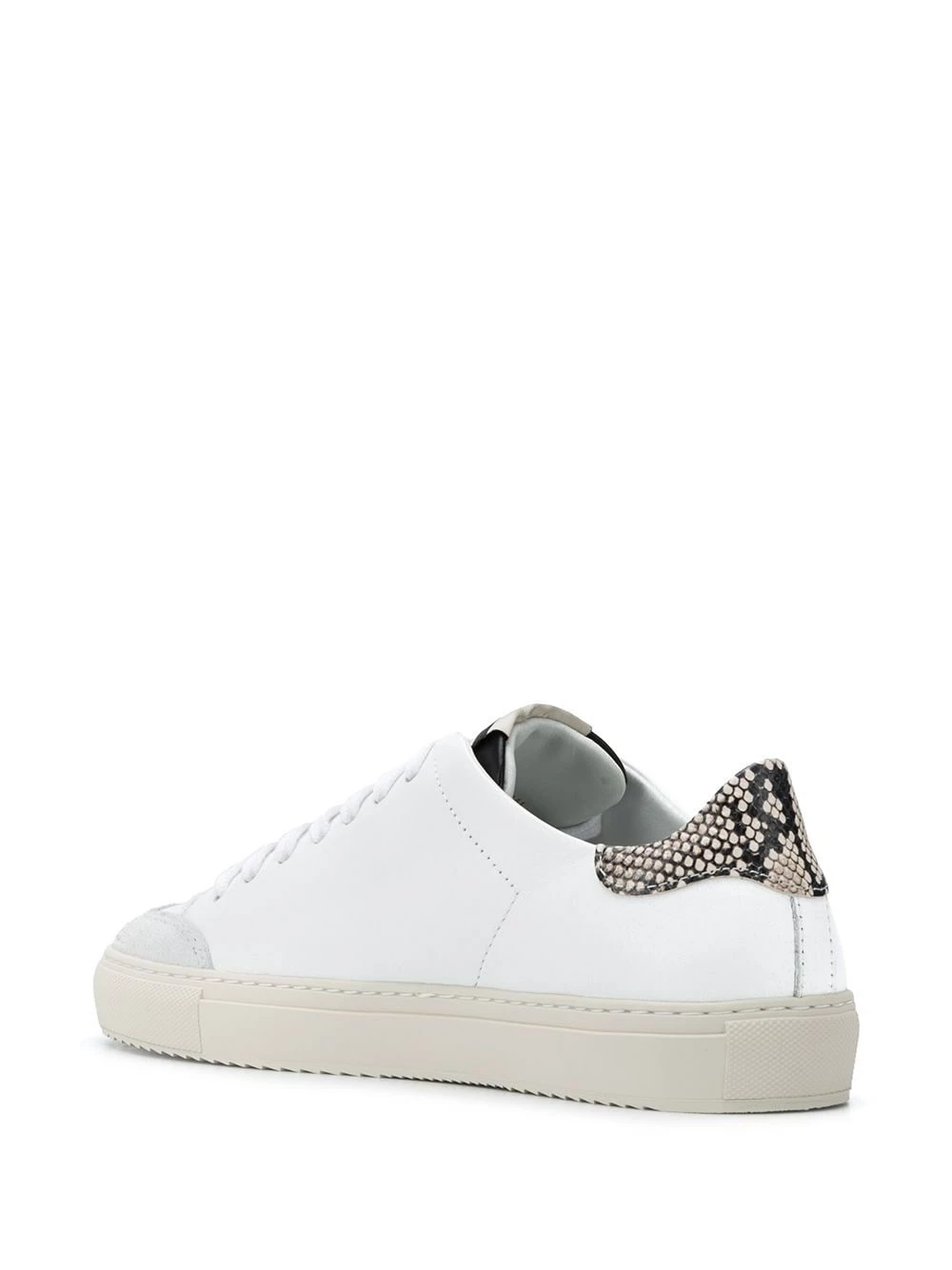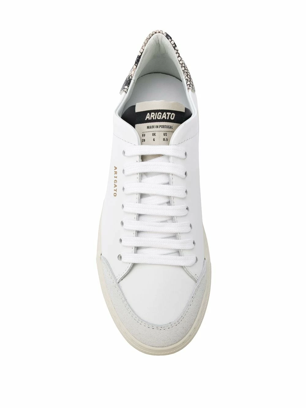 Imprimé peau de serpent, languette à patch logo, bout rond, fermeture à lacer sur le devant, semelle plate en caoutchouc. Couleur : blanc.