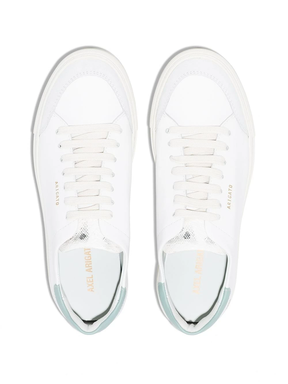 Fermeture à lacer sur le devant, bout rond, effet peau de serpent, contrefort contrastant, logo doré, semelle plate en caoutchouc. Matière : cuir.