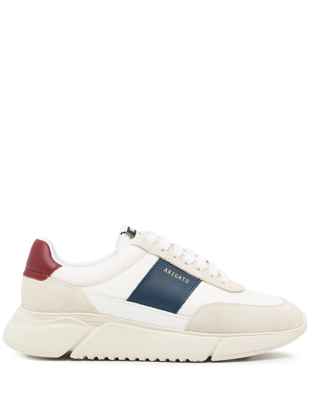 Bout rond, design à empiècements colour block, languette à patch logo, détail de rayure latérale, fermeture à lacer sur le devant, semelle intérieure à logo, semelle crantée en caoutchouc. Matière : cuir.