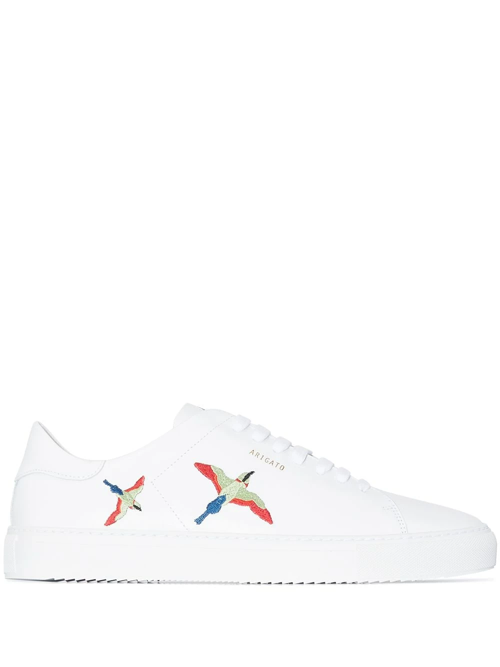 Baskets en cuir à oiseaux brodés Clean 90 Axel Arigato. Couleur : blanc.