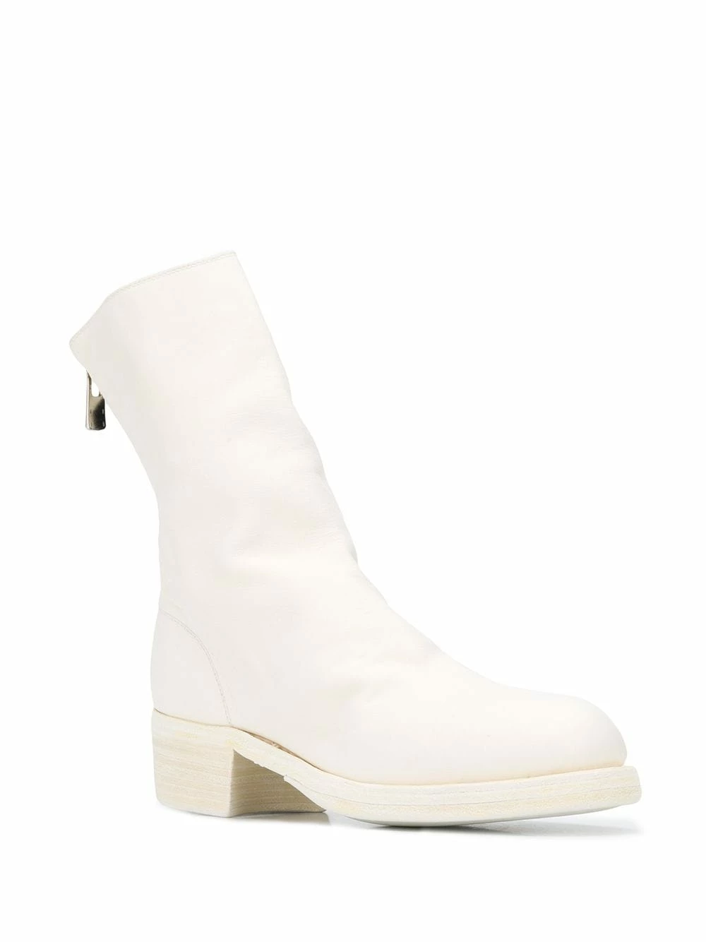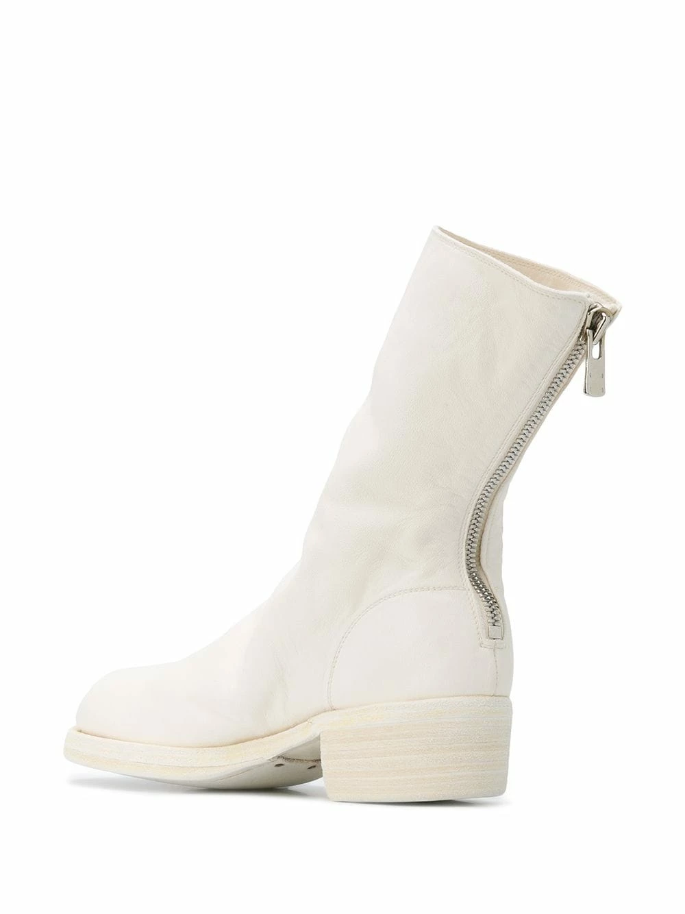 Bottes zippées à design structuré Guidi avec bout rond, fermeture zippée arriÚre et petit talon épais. Couleur : blanc.