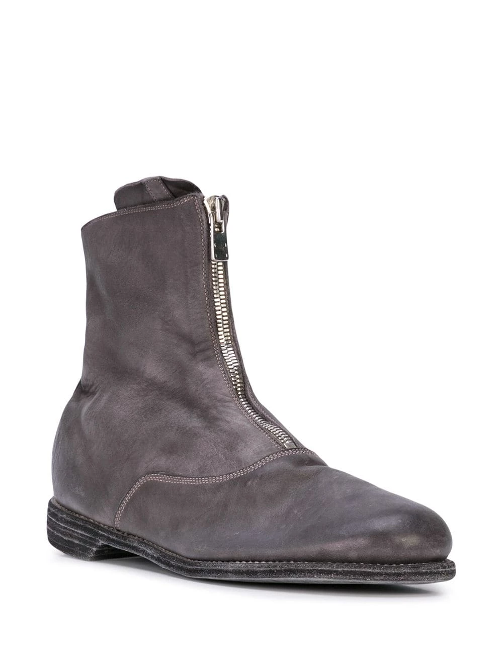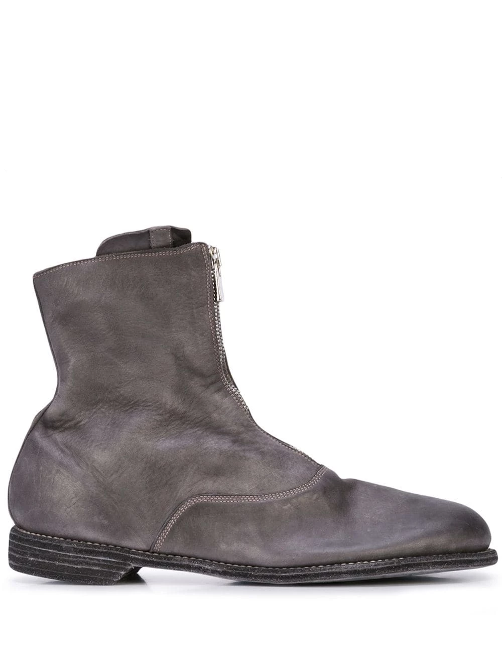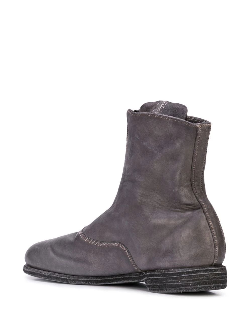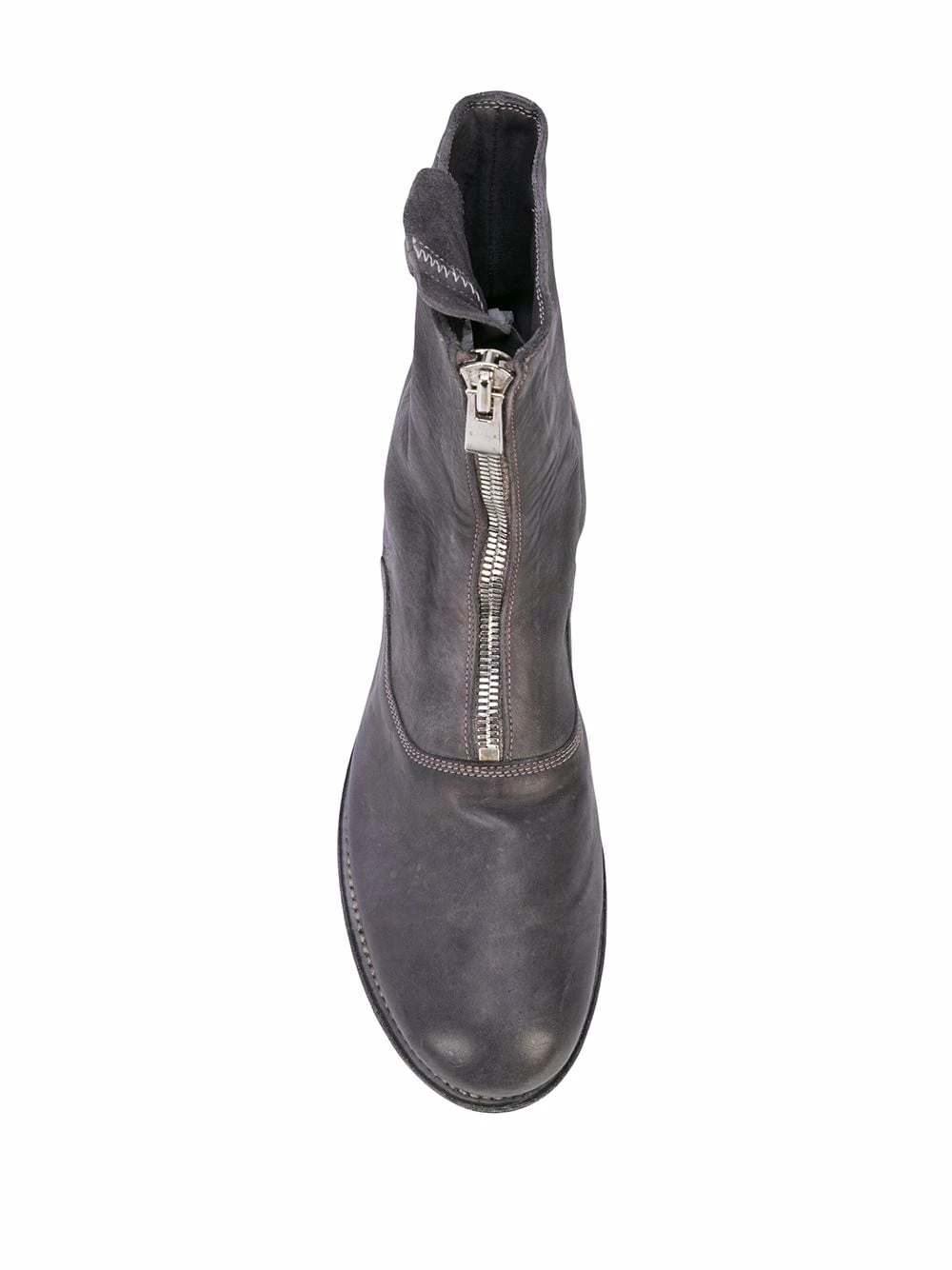 Bottines à fermeture zippée en cuir de cheval Guidi avec bout en amande, languette oversize, semelle plate et petit talon.