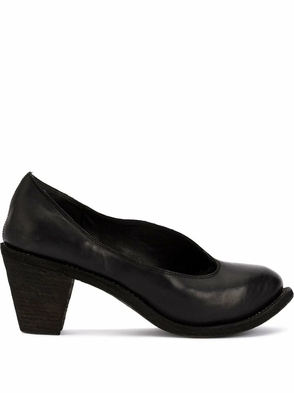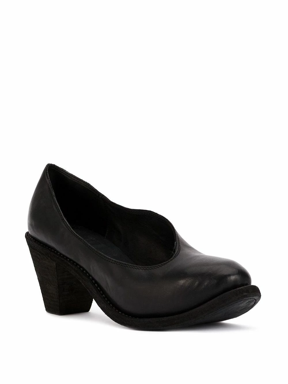 Escarpins en cuir de cheval noir à talon épais Guidi.