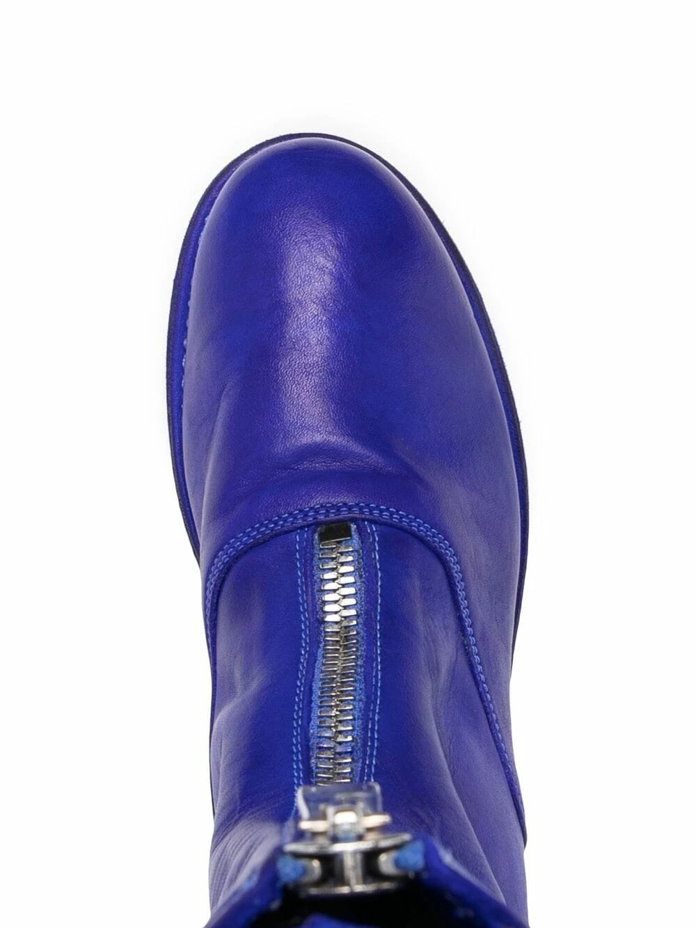 Doublure en cuir, bout en amande, fermeture zippée devant, hauteur cheville, petit talon.
