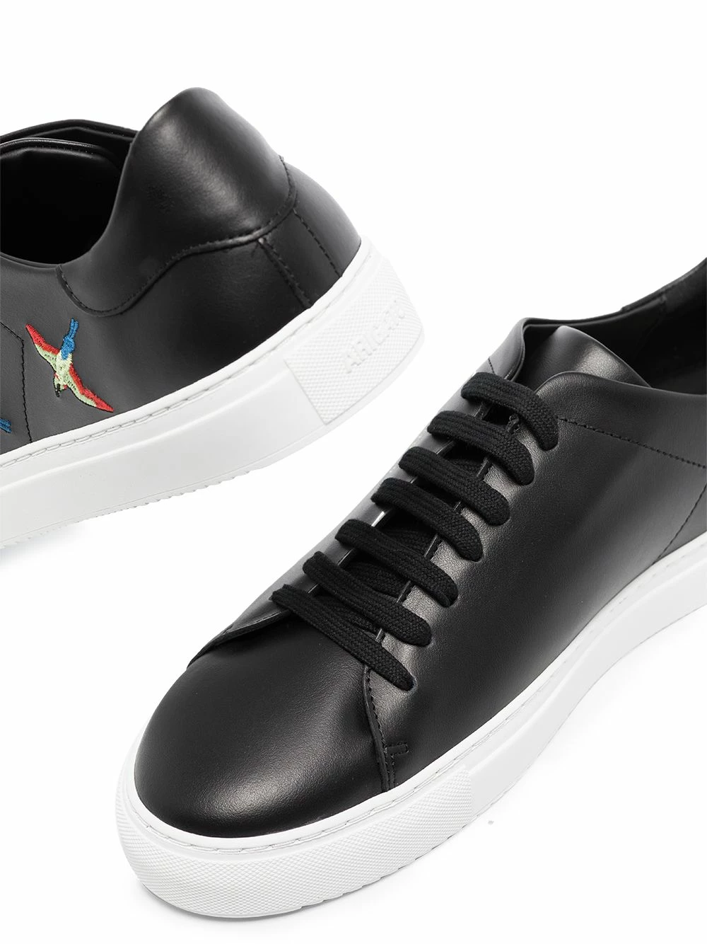 Bout rond, semelle plate en caoutchouc, fermeture à lacer sur le devant, broderies, semelle intérieure à logo. Couleur : noir. Matière : cuir.