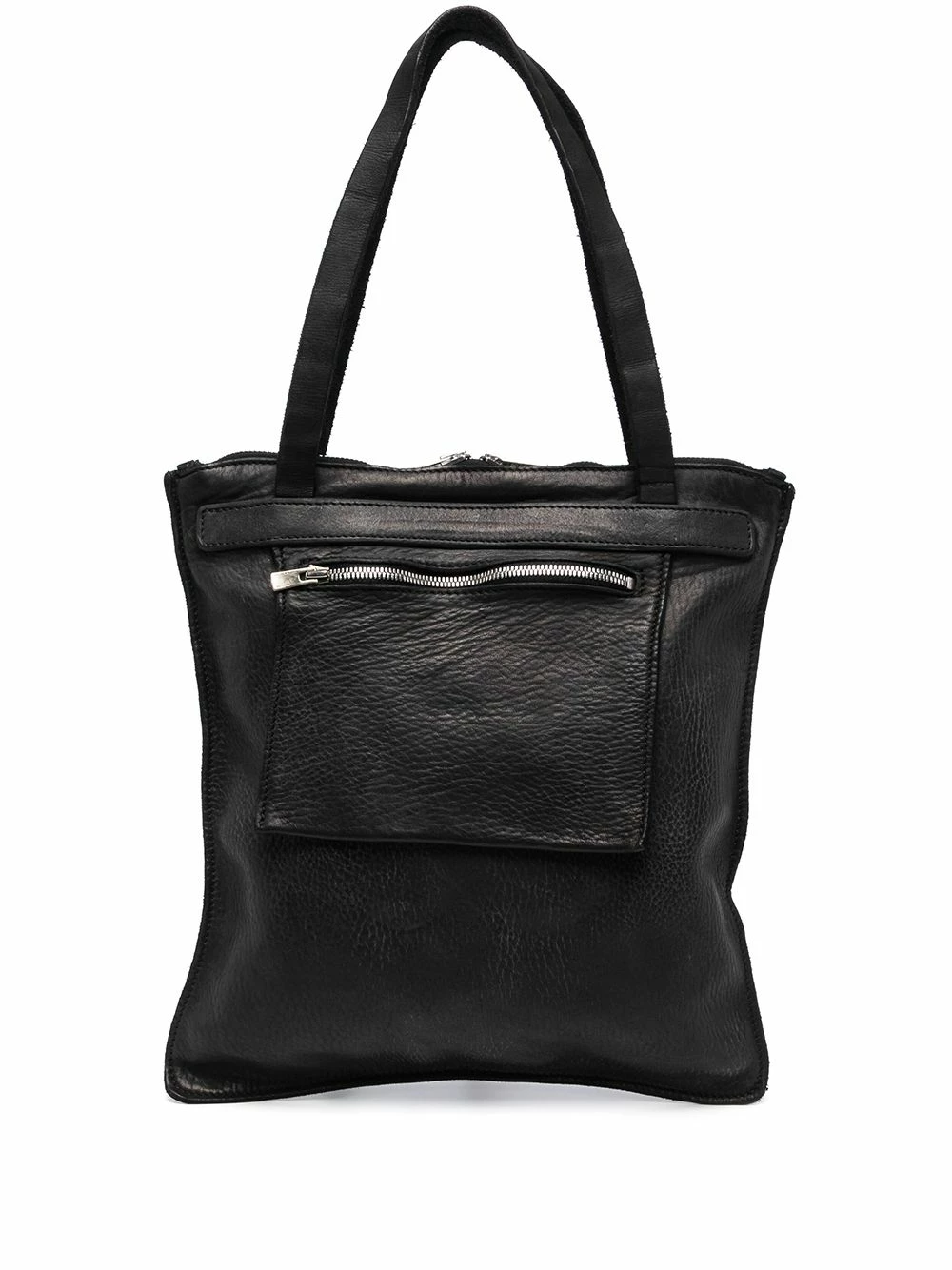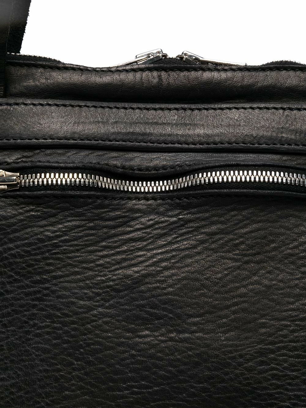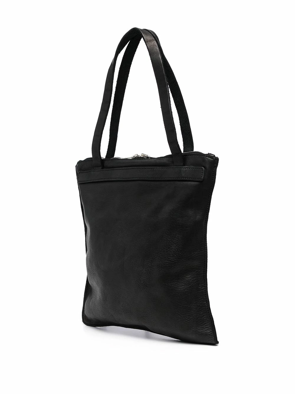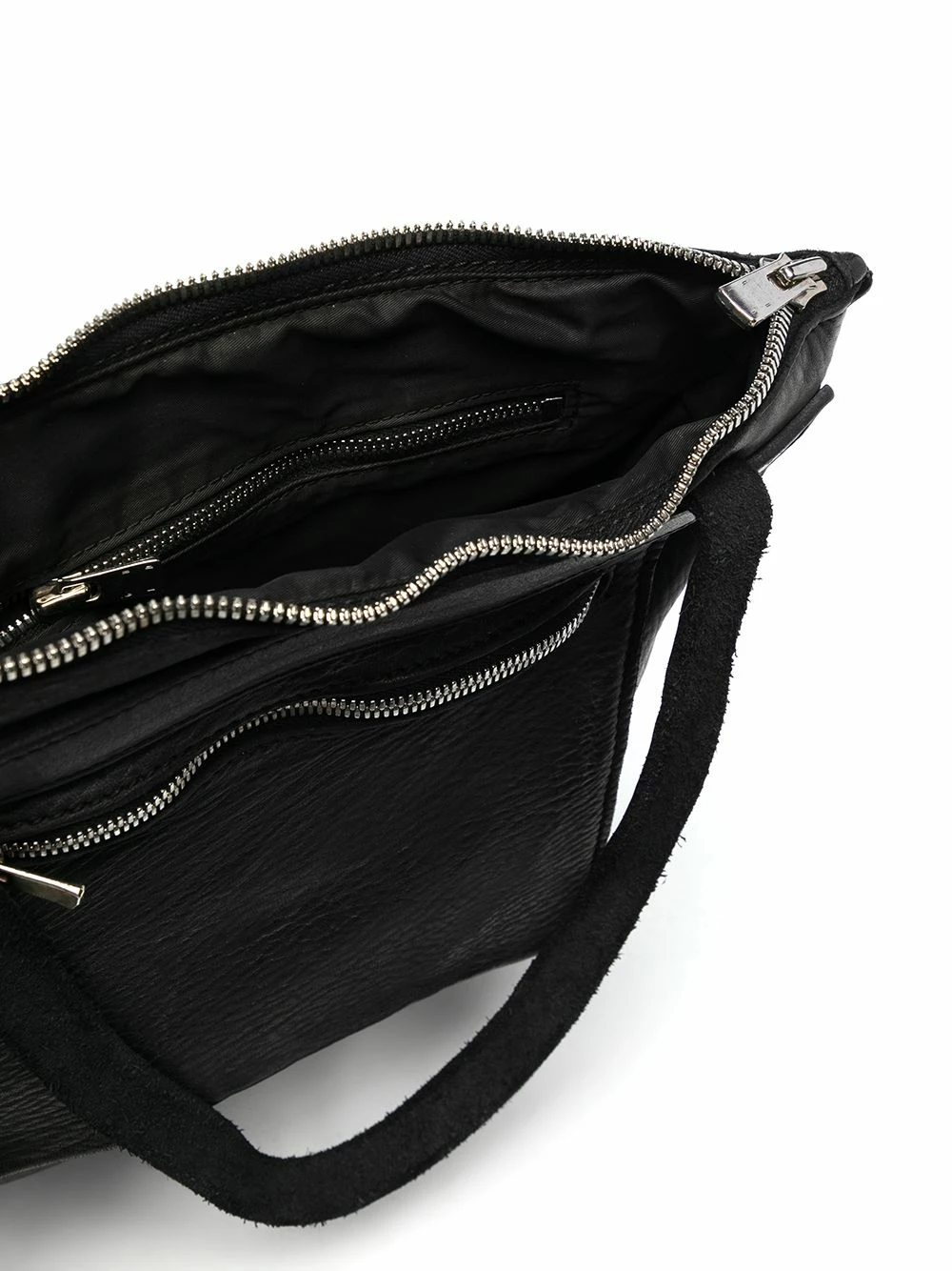 Anses en cuir sur le dessus, fermeture zippée sur le dessus, poche zippée sur le devant, poche intérieure zippée. Couleur : noir. Matière : cuir.
