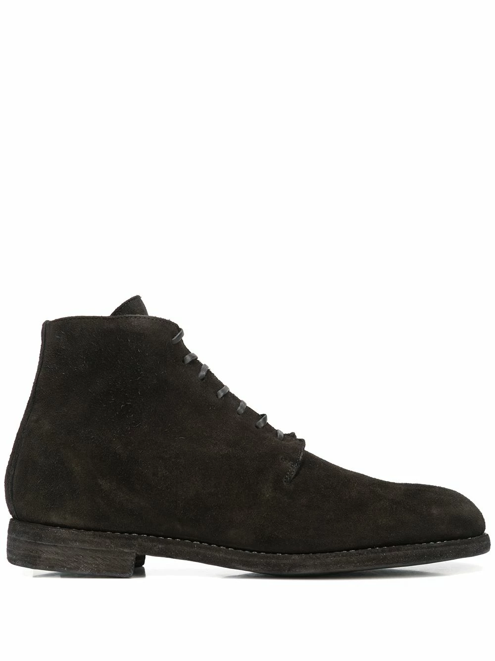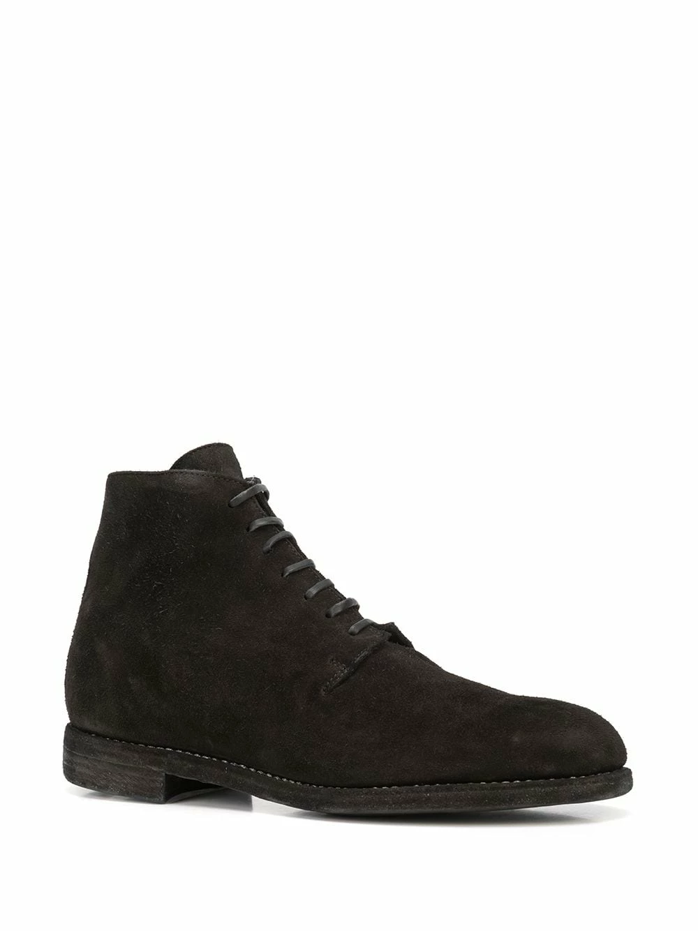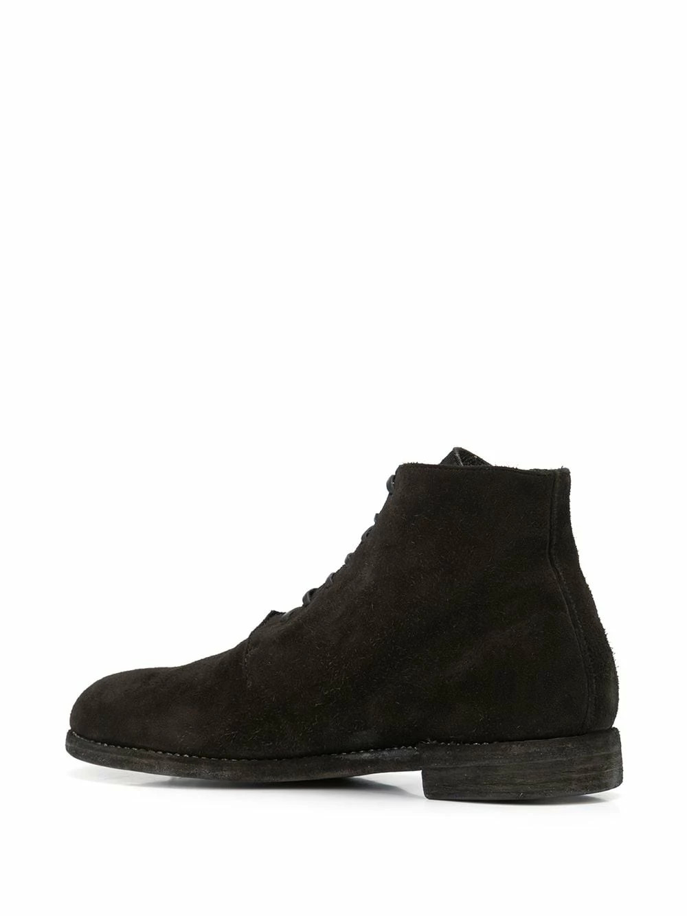 Bout rond, hauteur cheville, semelle plate, petit talon. Couleur : noir.
