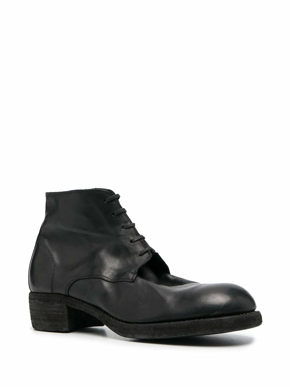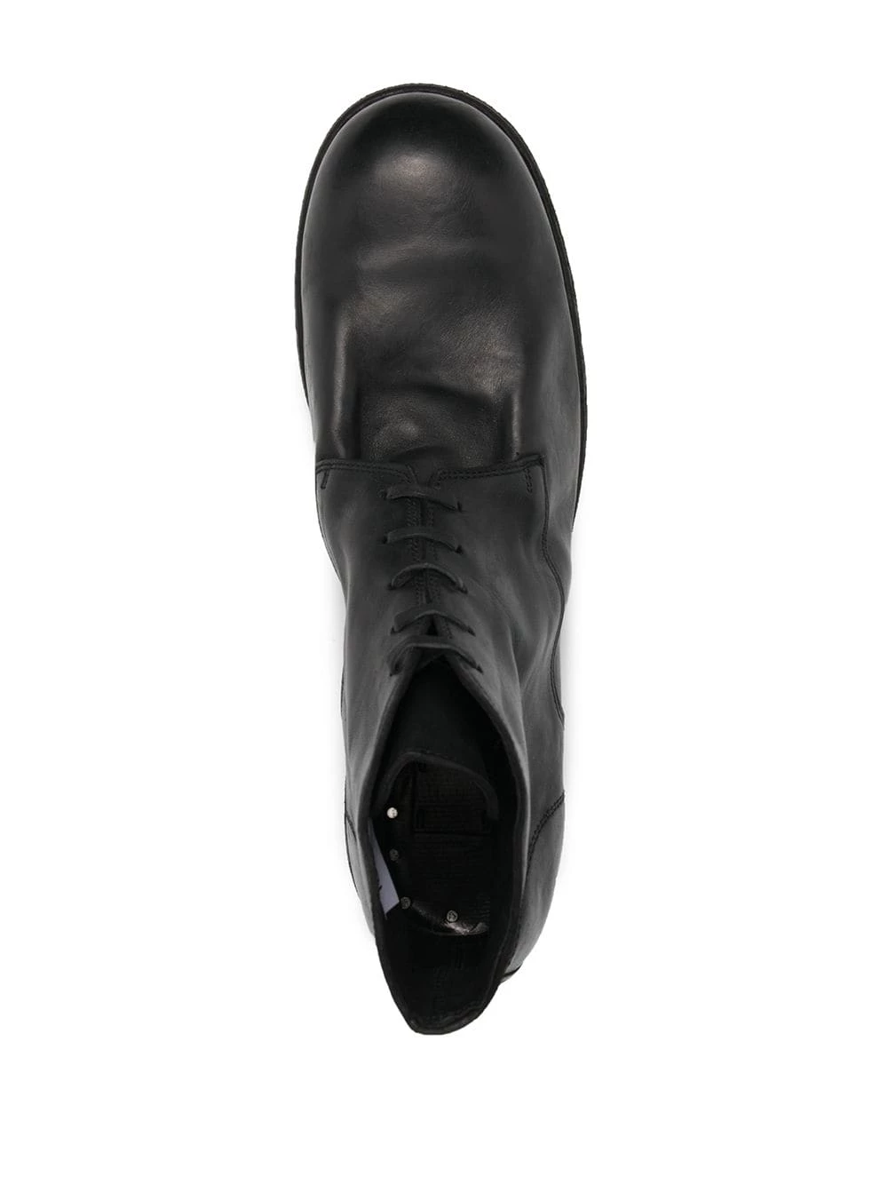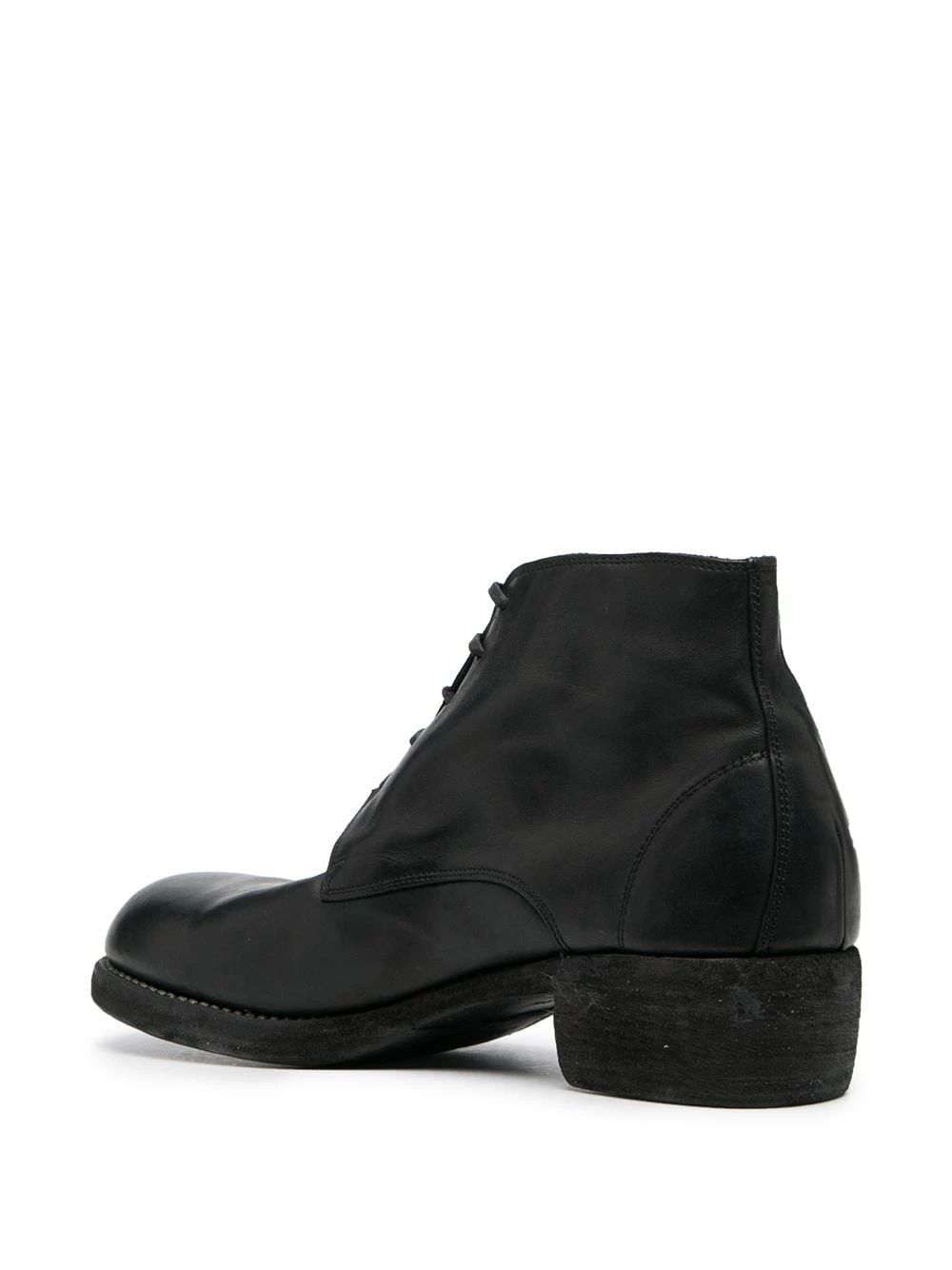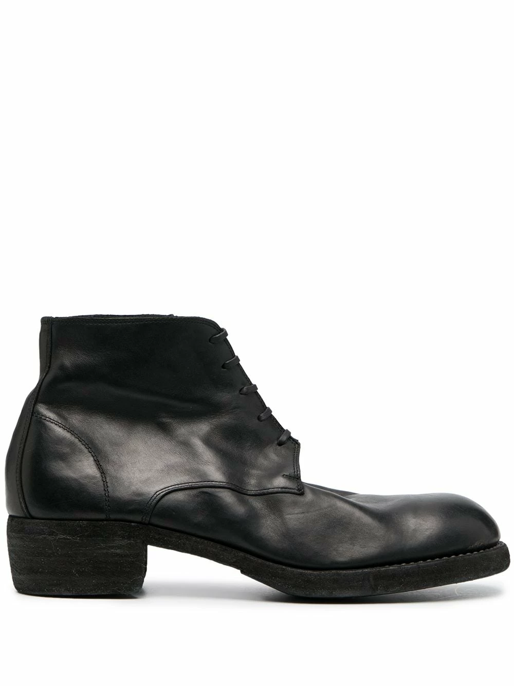 Bout rond, fermeture à lacer sur le devant, petit talon. Couleur : noir. Matière : cuir de cheval.