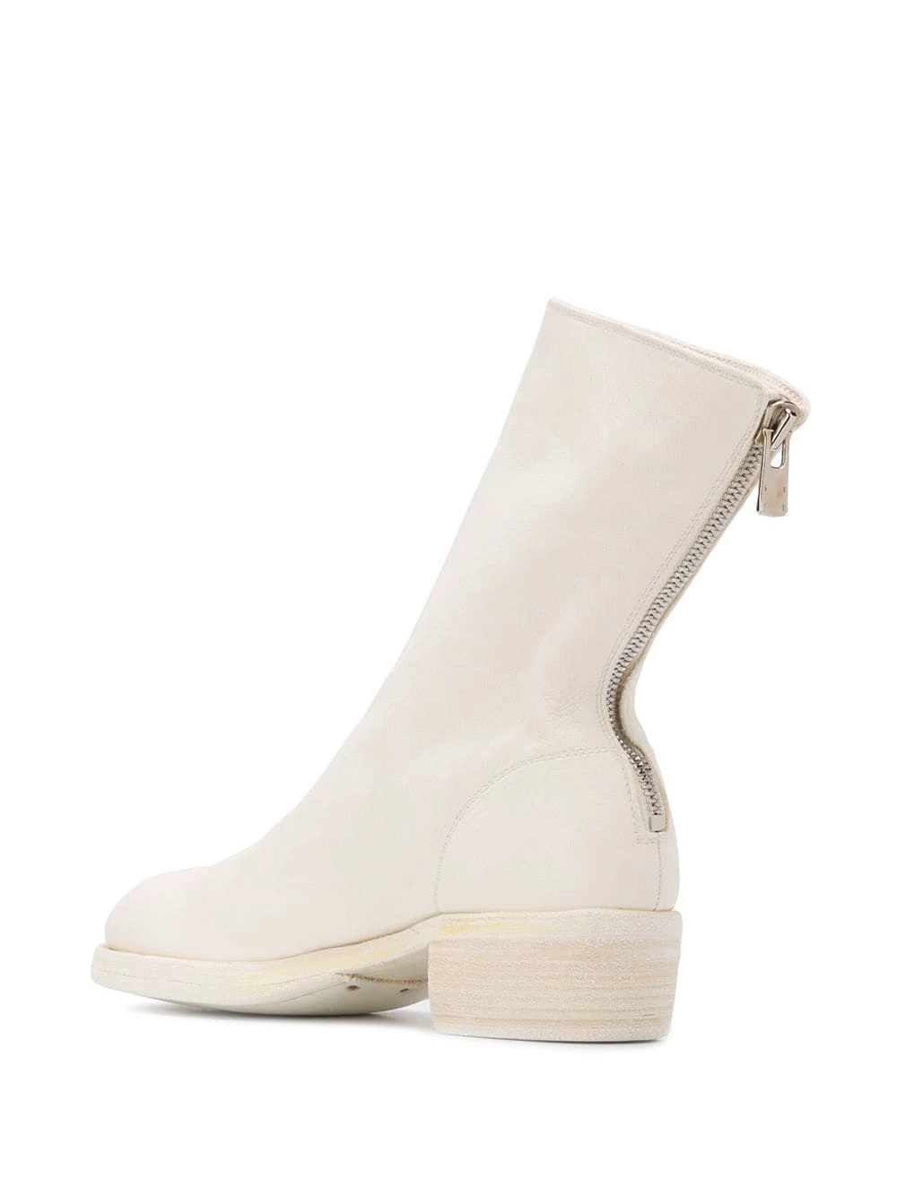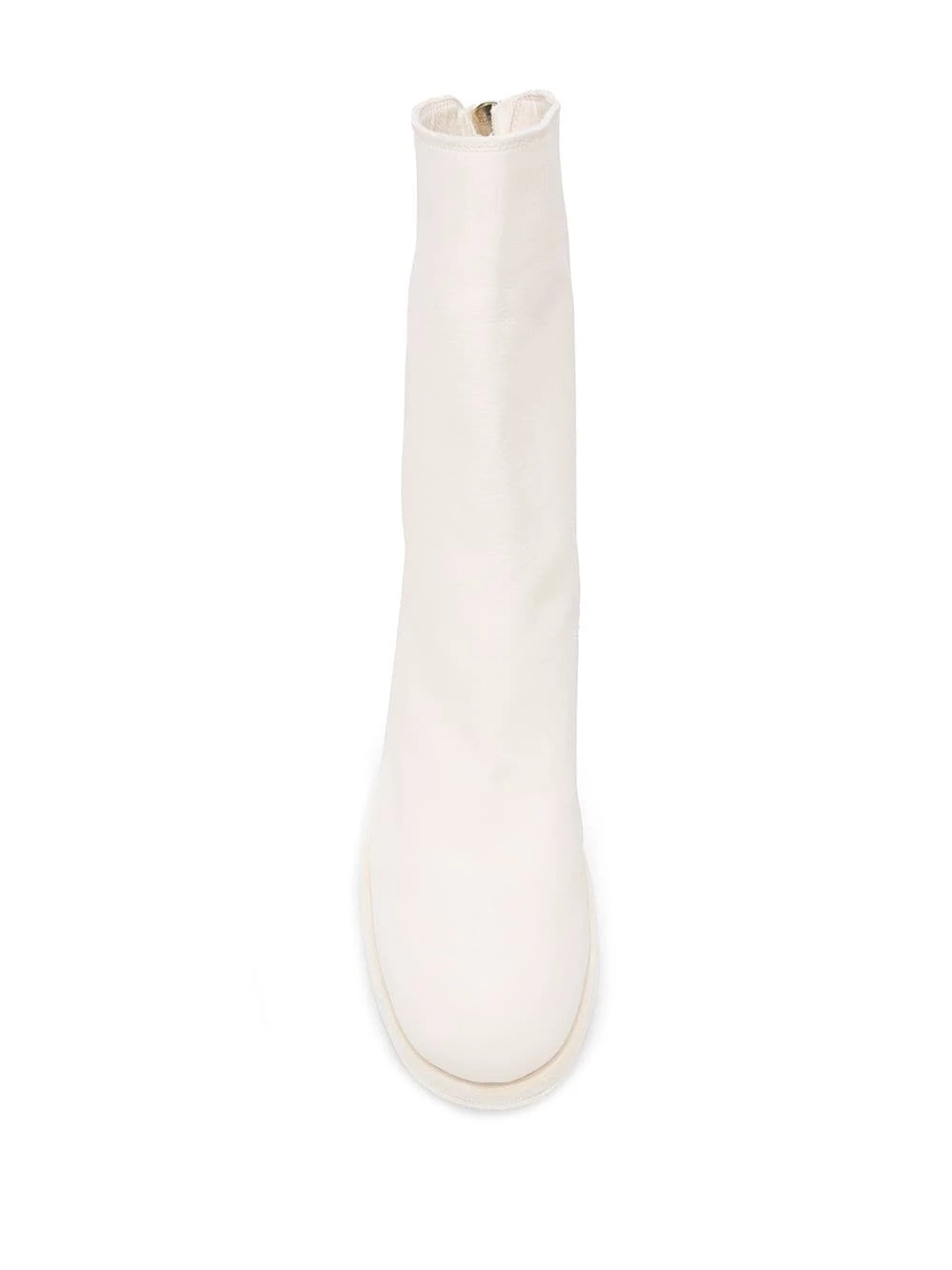 Bottines à fermeture zippée en cuir Guidi avec fermeture zippée arrière, bout rond, hauteur cheville et semelle plate. Couleur : blanc.