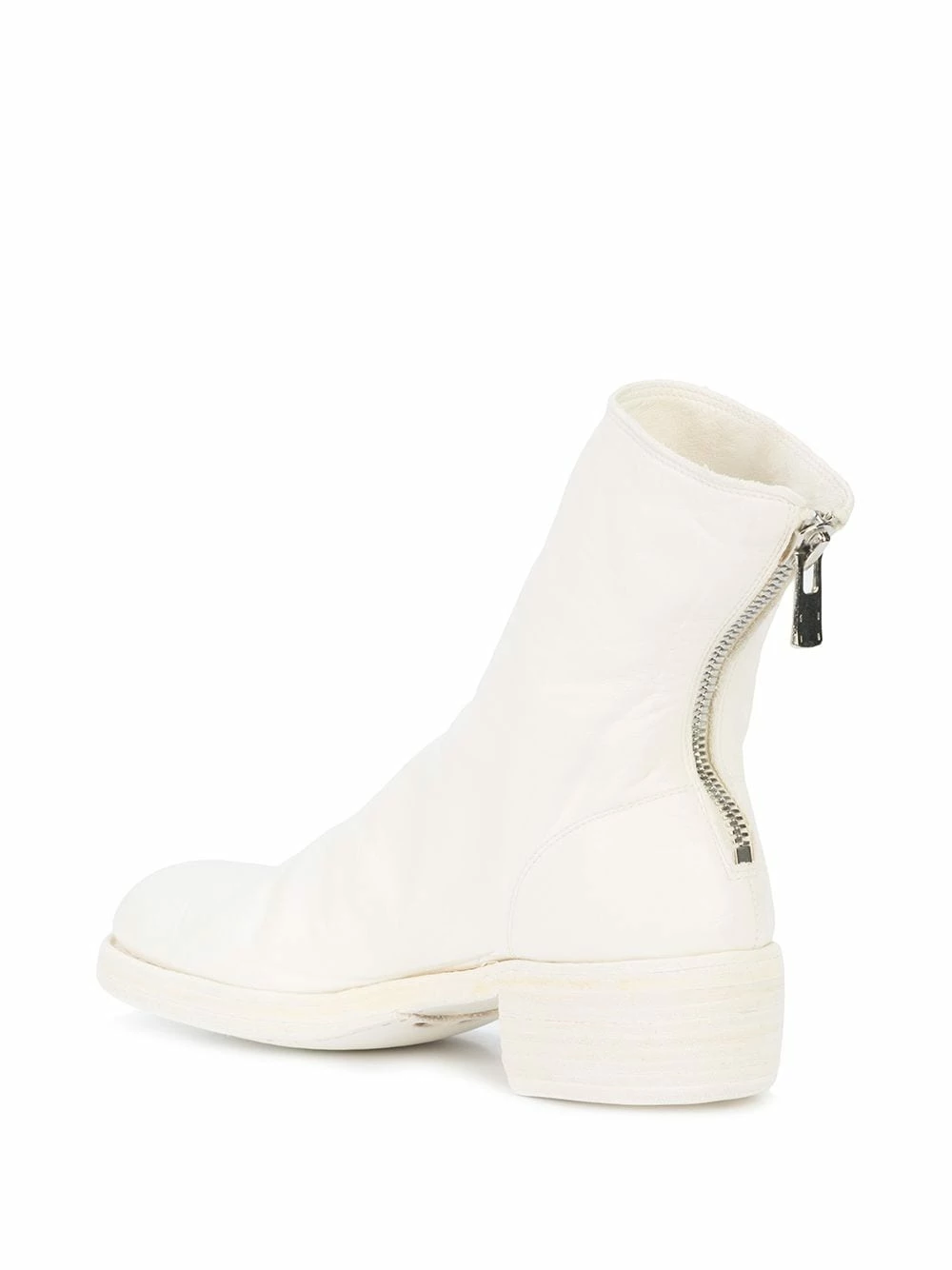 Bottines en cuir de cheval blanc à fermeture arrière zippée Guidi avec bout rond, fermeture zippée devant, design montant sur la cheville, languette arrière et petit talon épais.