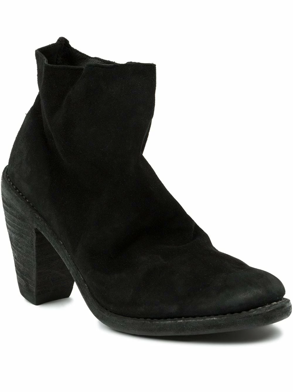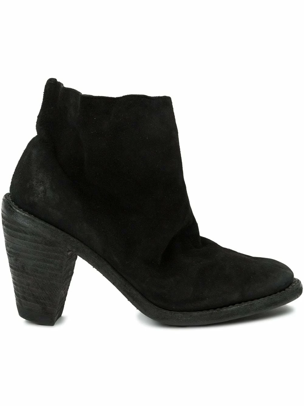 Bottines en cuir de veau noir à talon biseauté Guidi.