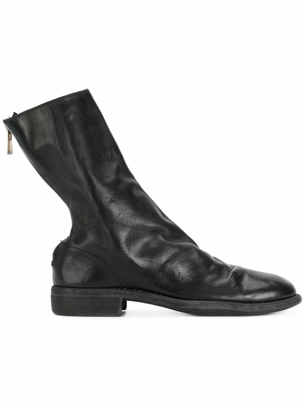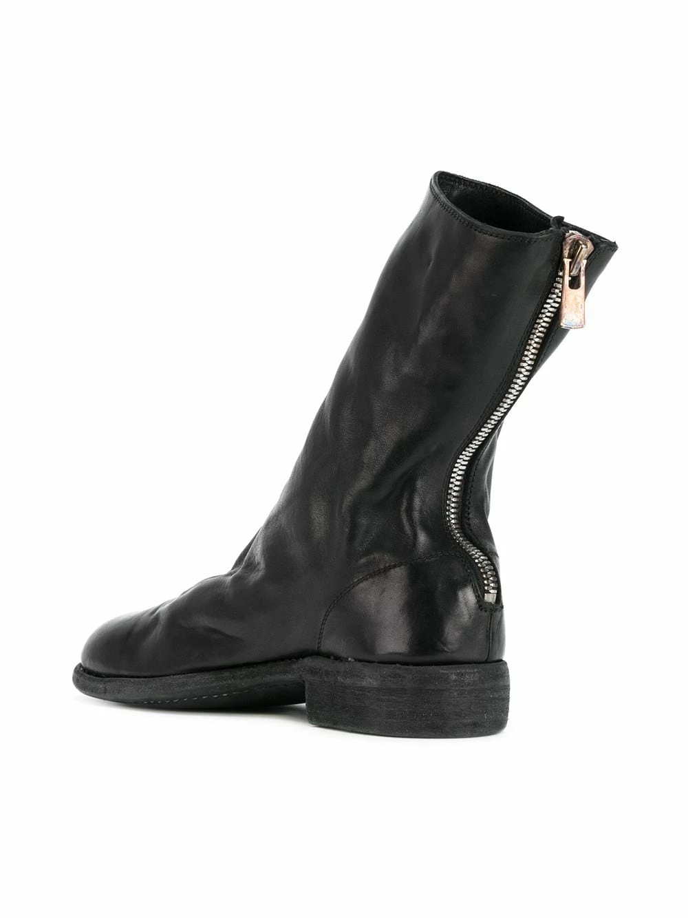 Bottines en cuir noir à fermeture arrière zippée Guidi avec fermeture zippée arrière et bout rond.