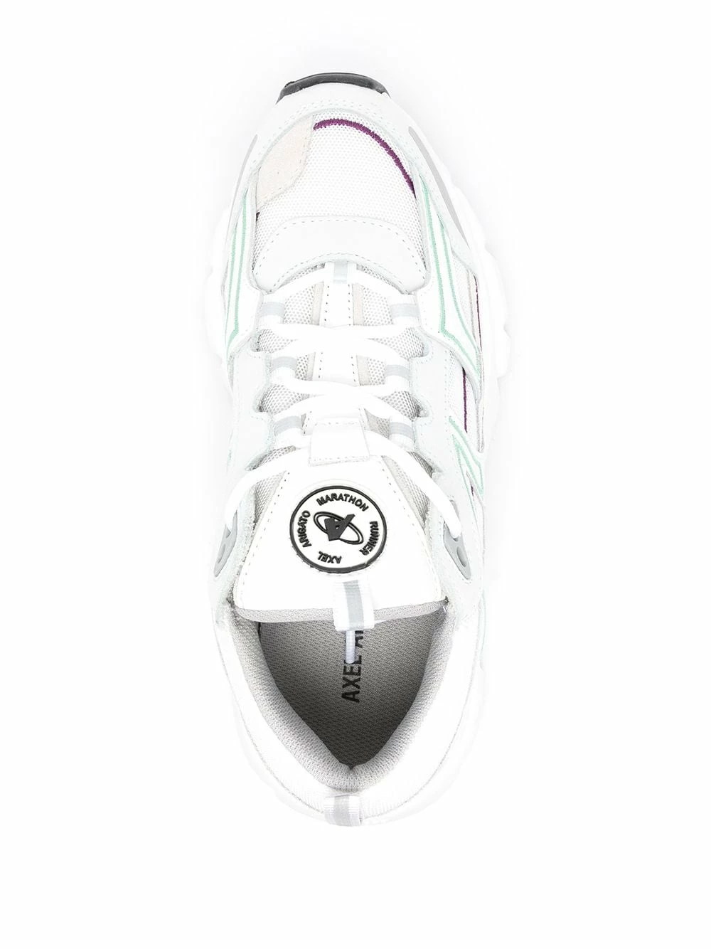 Blanc, vert opaline, languette à logo imprimé, fermeture à lacer sur le devant, bout rond, semelle épaisse en caoutchouc, semelle intérieure à logo.