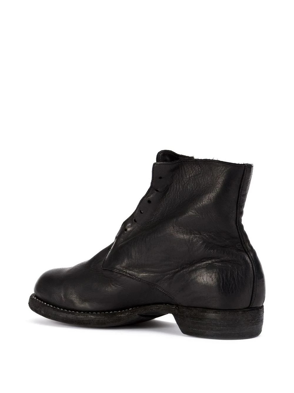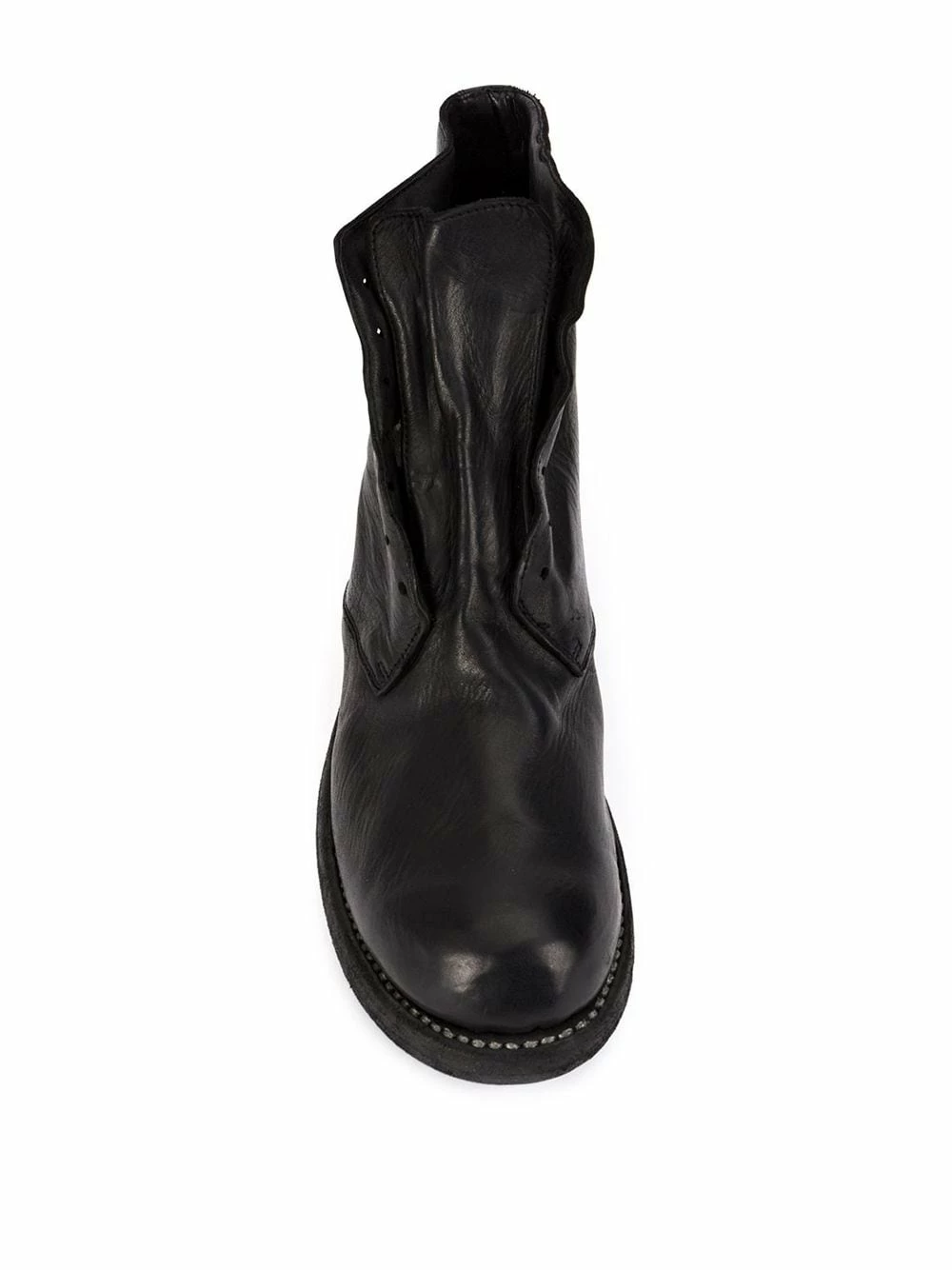 Bottines à design sans lacets en cuir Guidi avec bout rond, design à enfiler et petit talon. Couleur : noir.