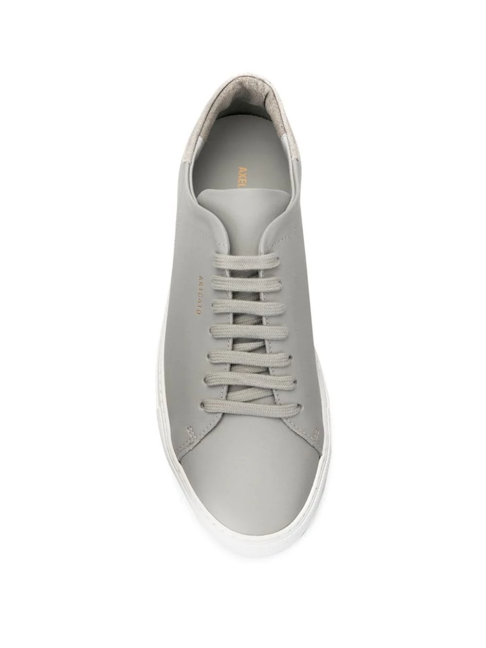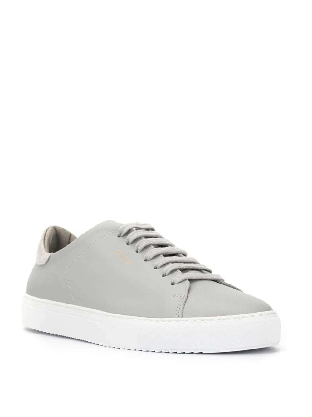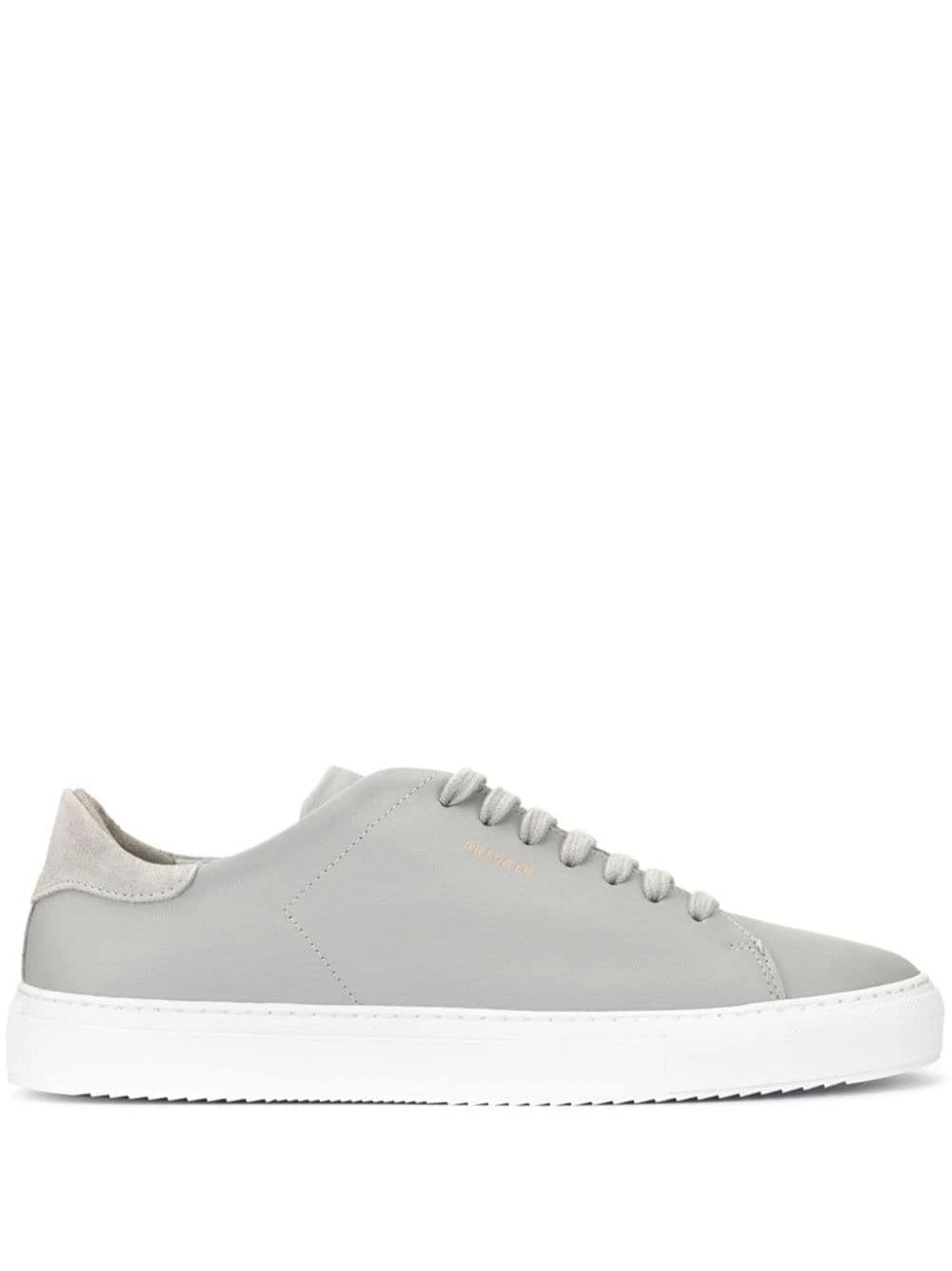 Baskets classiques en cuirs Axel Arigato avec semelle en caoutchouc, bout rond et fermeture à lacer sur le devant. Couleur : gris.