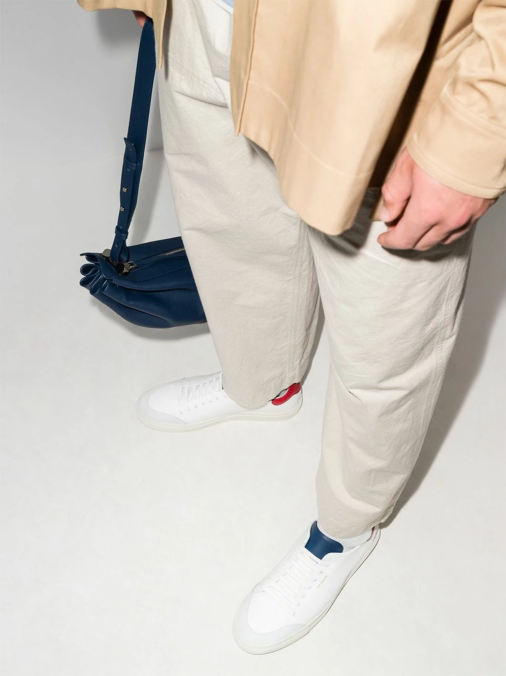 Design à empiècements colour block, fermeture à lacer sur le devant, bout rond, logo embossé sur le côté, contrefort contrastant, semelle plate en caoutchouc. Matière : cuir.