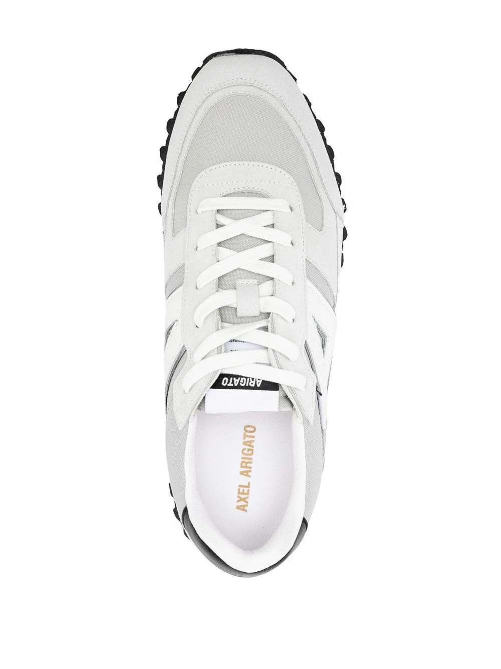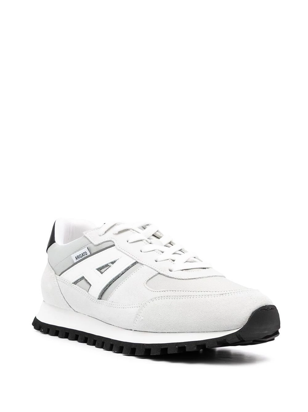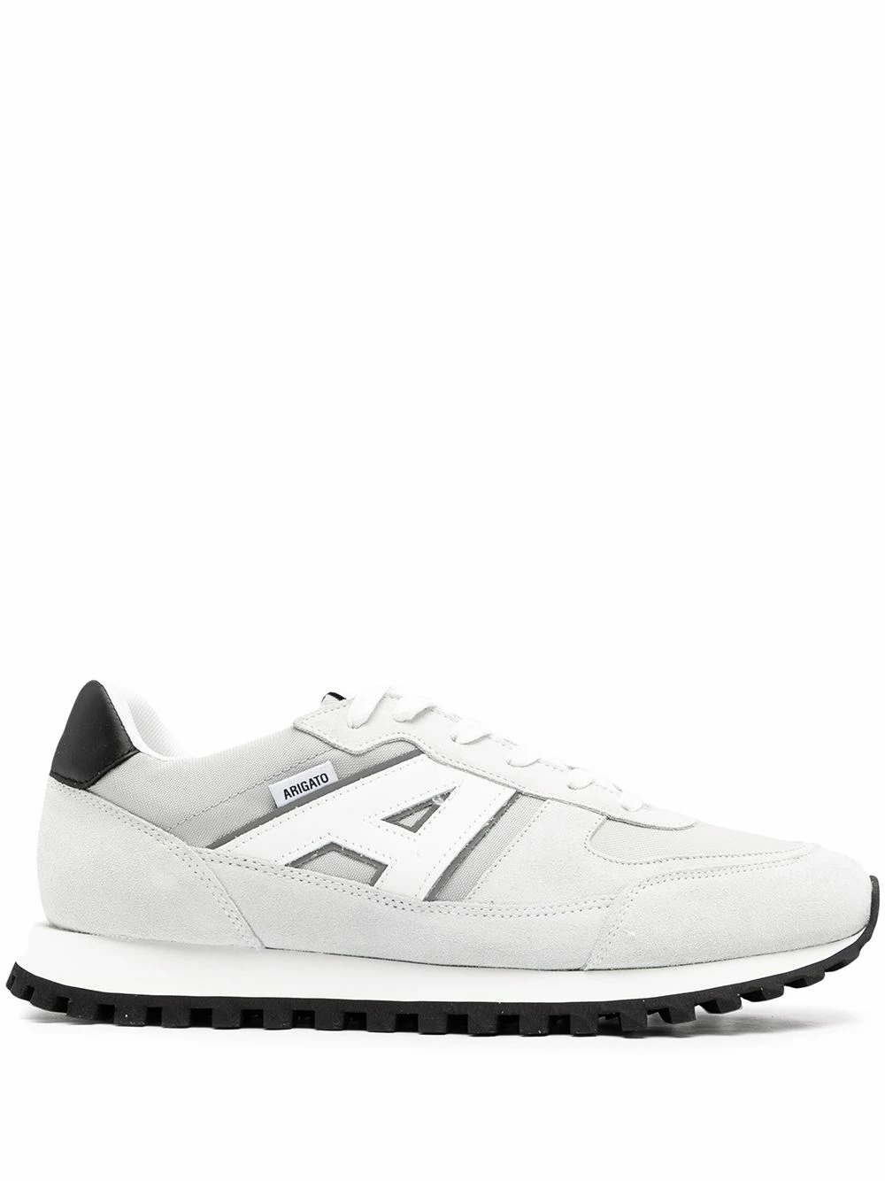 Design à empiècements, fermeture à lacer sur le devant, bout en amande, languette à logo imprimé, semelle plate en caoutchouc. Couleur : gris. Matière : cuir.