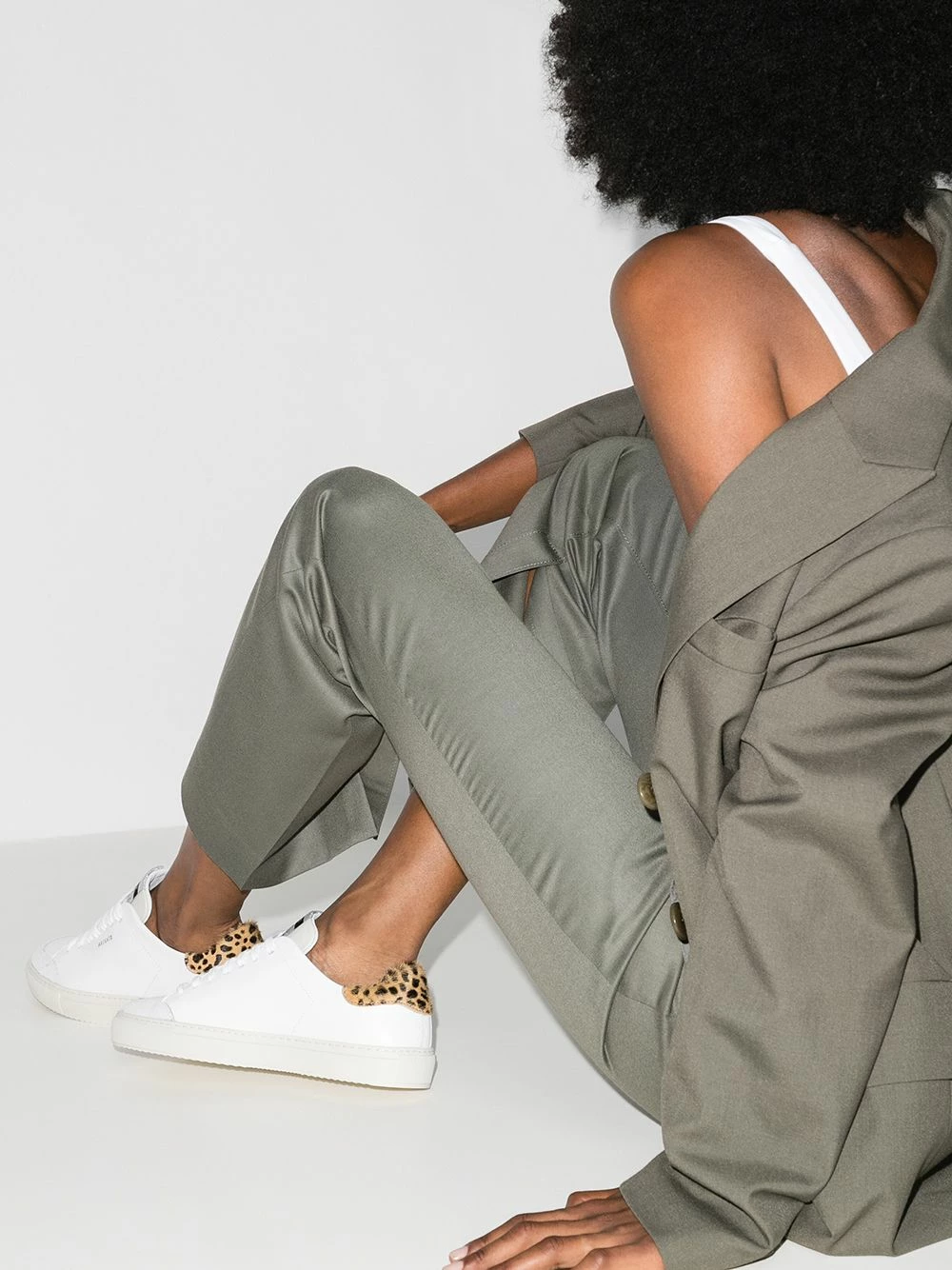 Semelle plate en caoutchouc, contrefort contrastant, fermeture à lacer sur le devant, bout en amande, logo imprimé sur le côté. Couleur : blanc.
