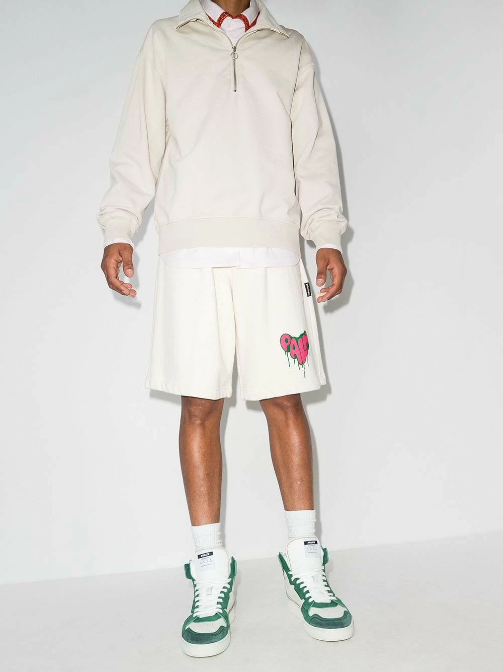 Logo doré, design à empiècements, hauteur cheville, perforations aux orteils, bout rond, fermeture à lacer sur le devant, languette à patch logo, semelle plate en caoutchouc. Matière : cuir.