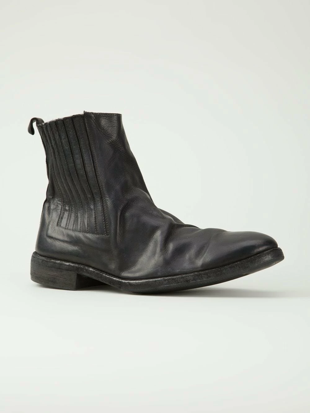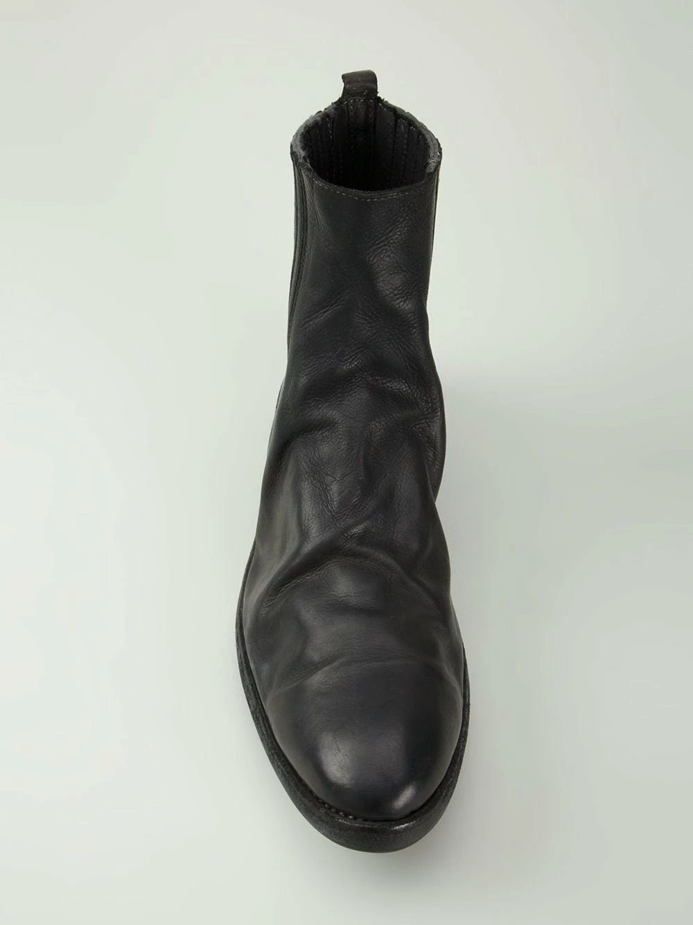 Bottines chelsea à effet usé en cuir noir Guidi. Cet article taille petit, veuillez le choisir une taille au dessus de votre taille habituelle.