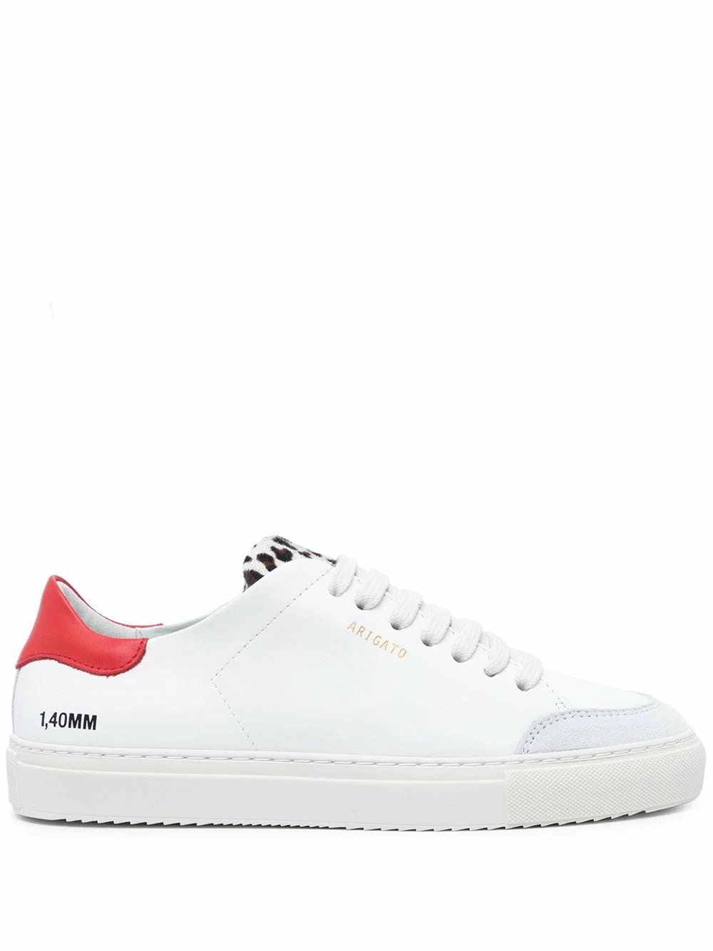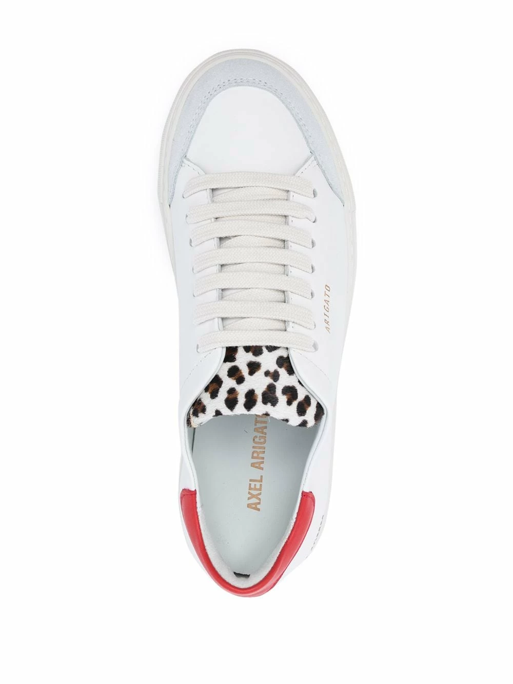 Imprimé léopard, fermeture à lacer sur le devant, semelle plate en caoutchouc, logo imprimé sur le côté. Couleur : blanc. Matière : cuir.