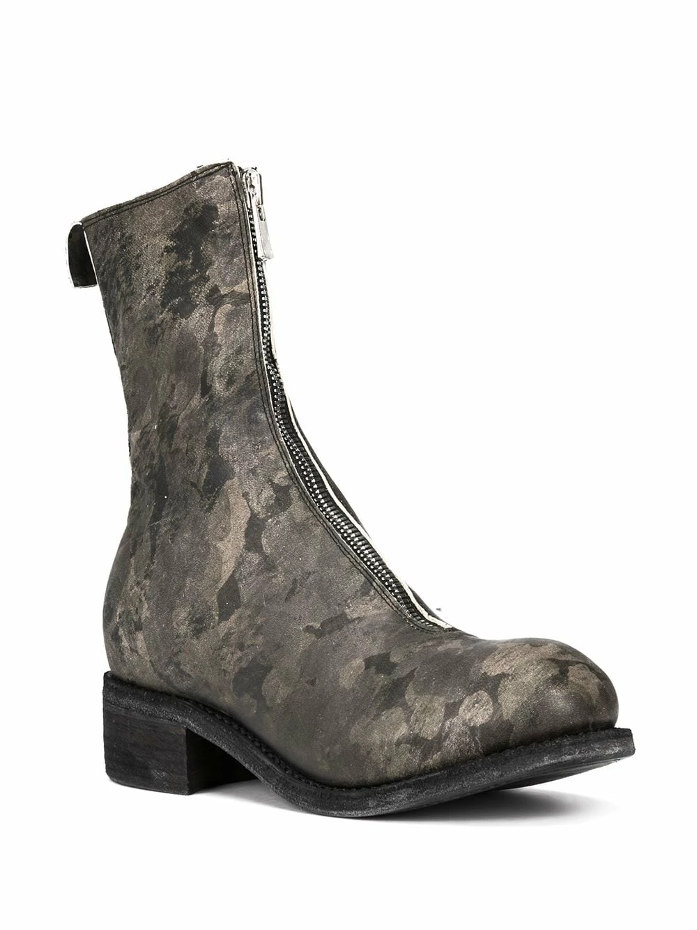 Bottines imprimées zippées en cuir de cheval Guidi avec bout rond et talon bottier.