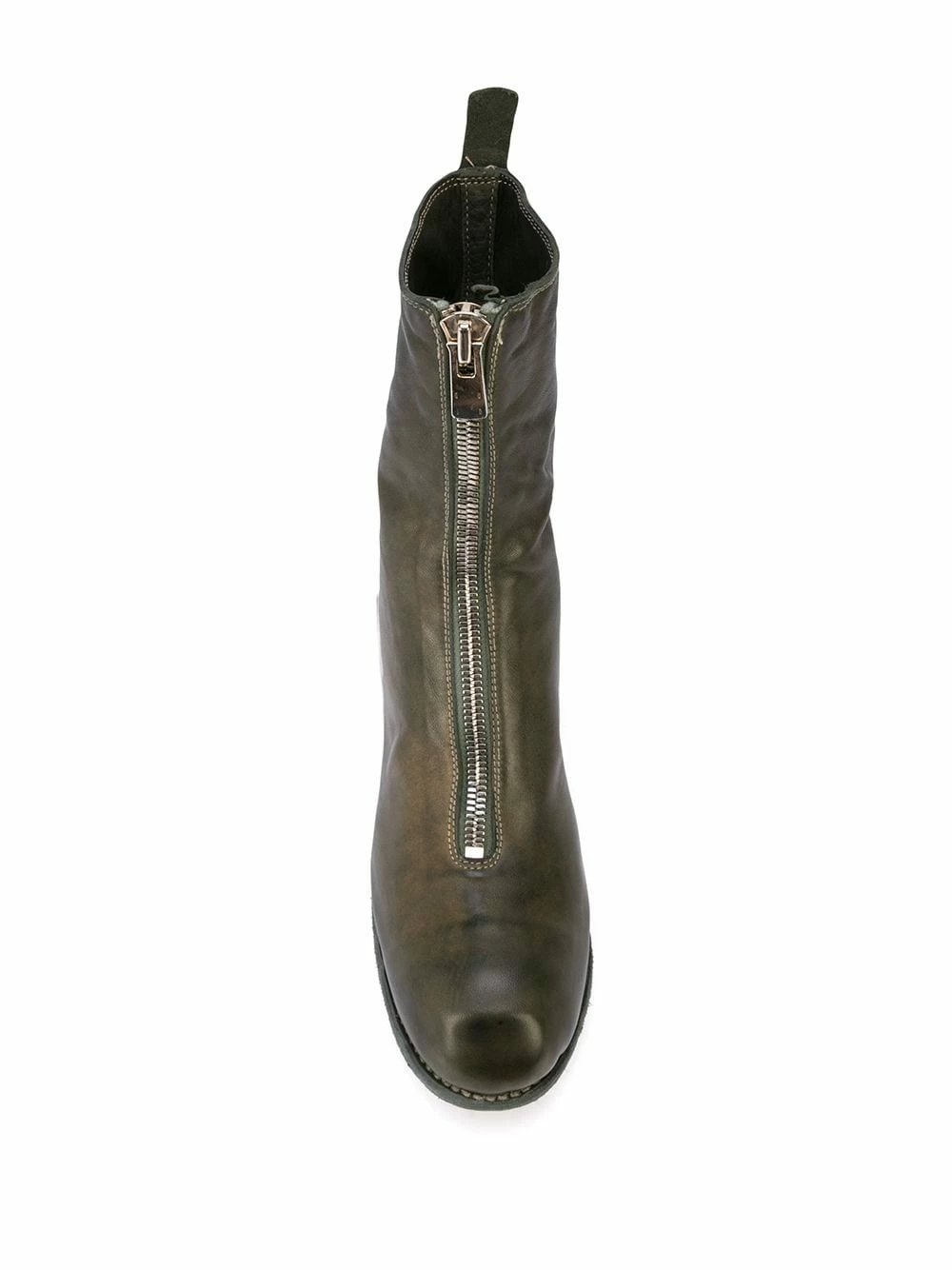 Bottines à fermeture zippée en cuir de cheval Guidi avec languette arriÚre, fermeture zippée devant, bout rond, petit talon épais et semelle intérieure à logo. Couleur : vert.