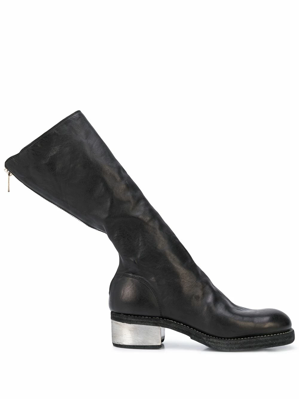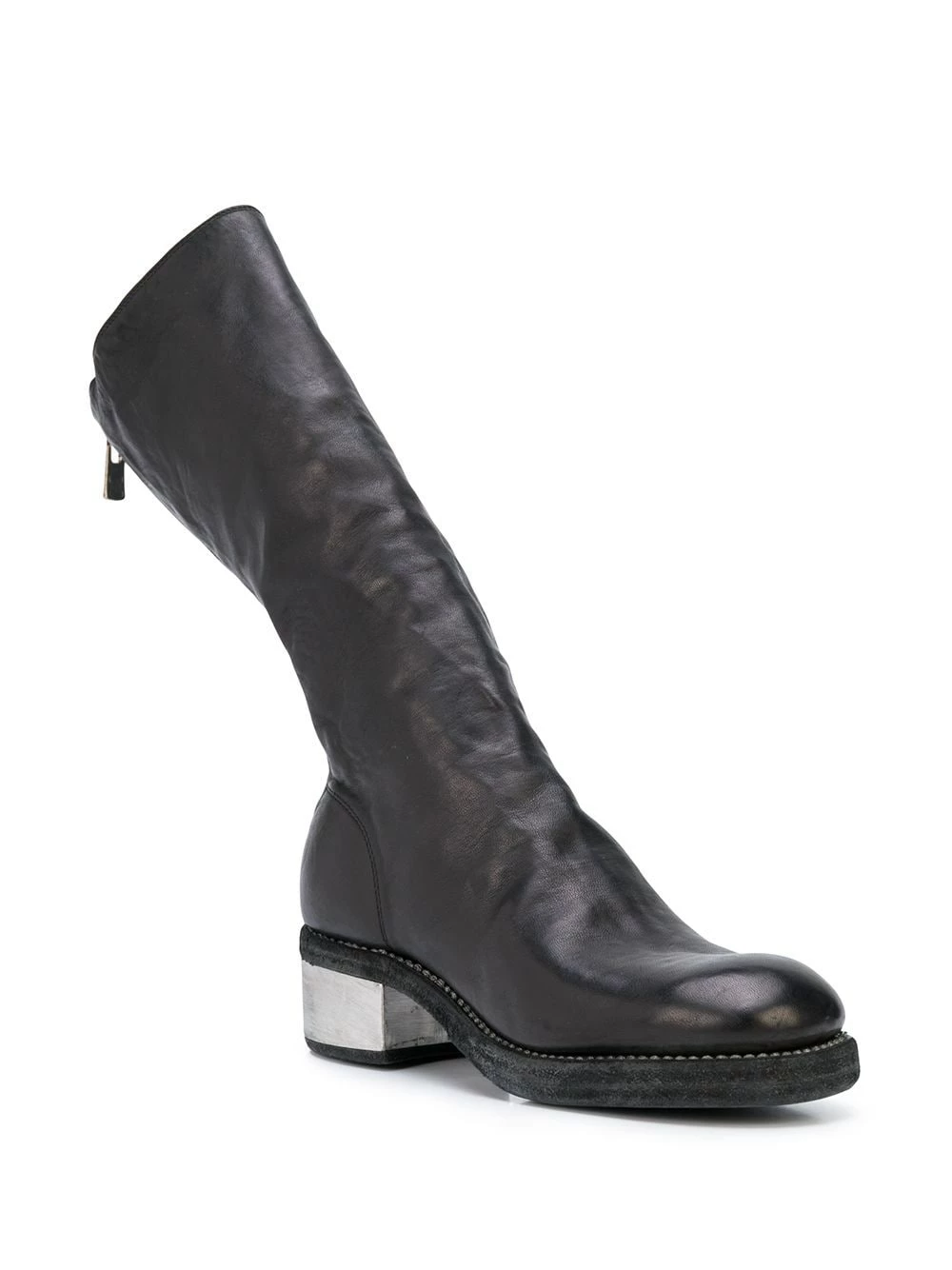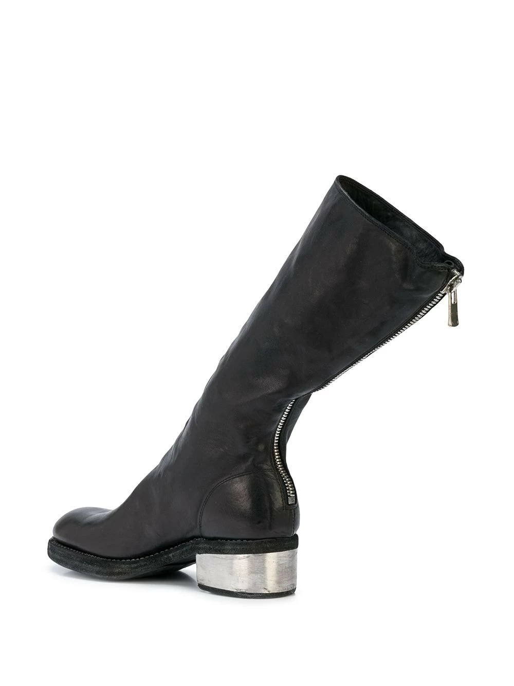 Bottes à petit talon métallisé Guidi avec bout rond, fermeture zippée arriÚre et petit talon. Couleur : noir.