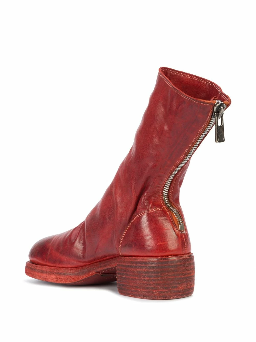 Bottines en cuir de cheval rouge à fermeture zippée au dos Guidi avec petit talon épais.
