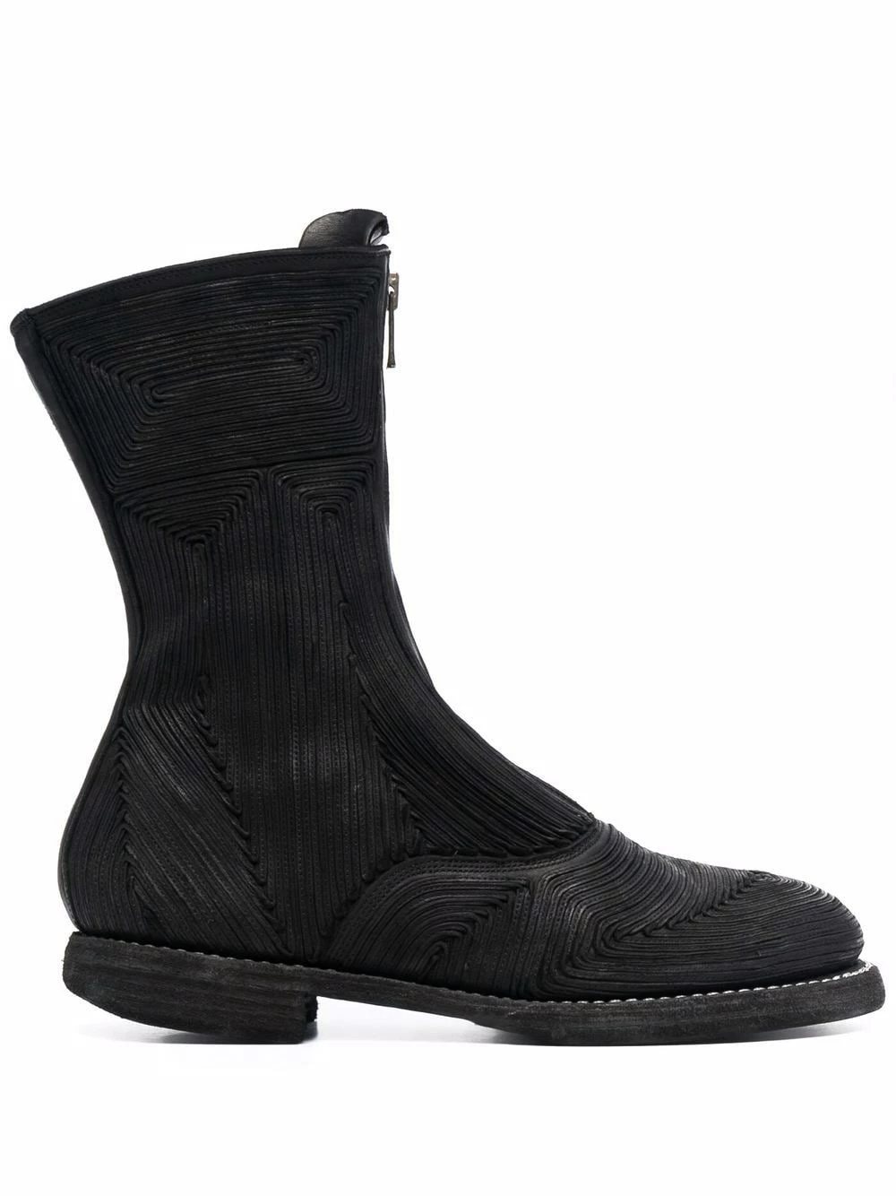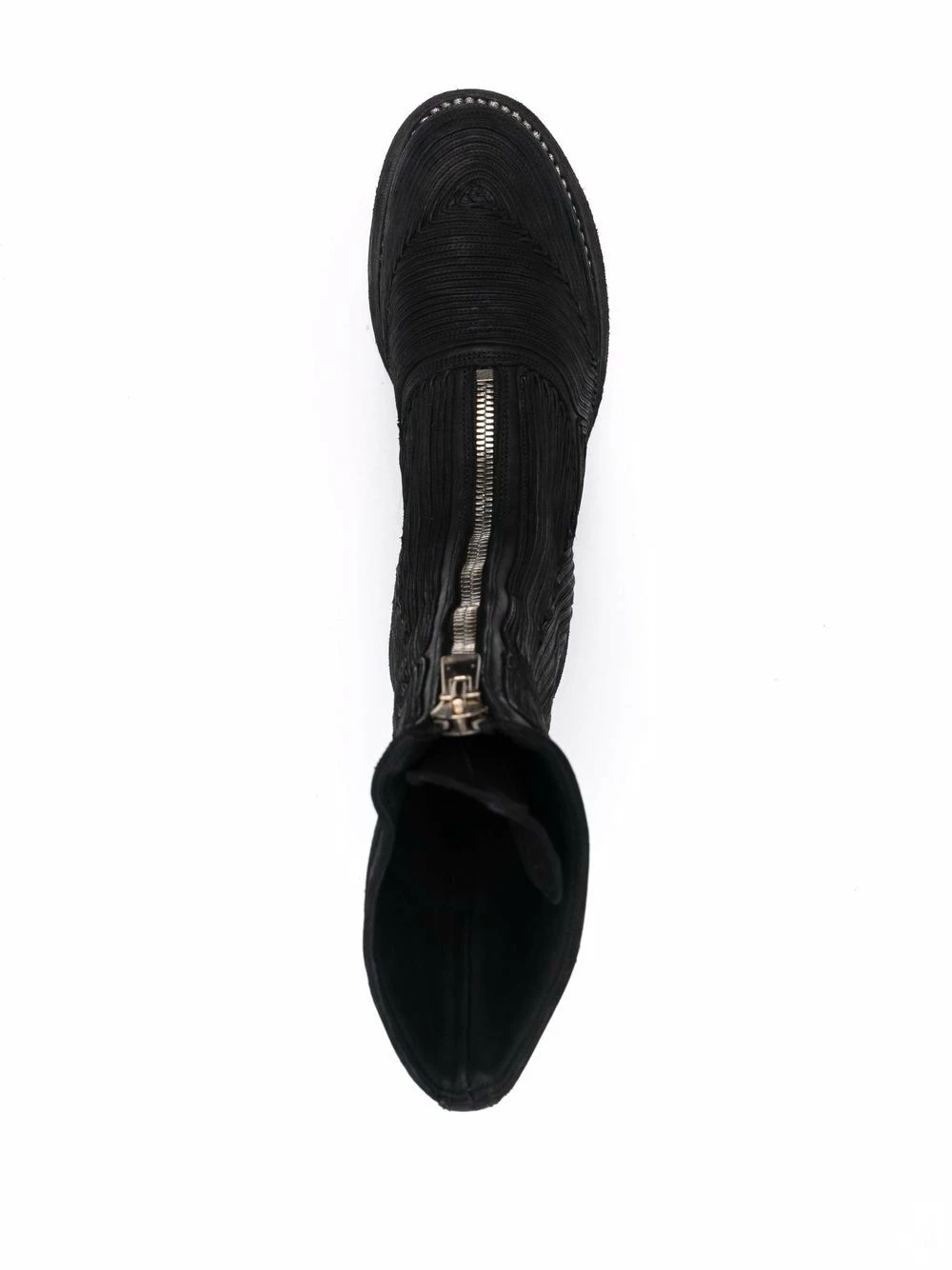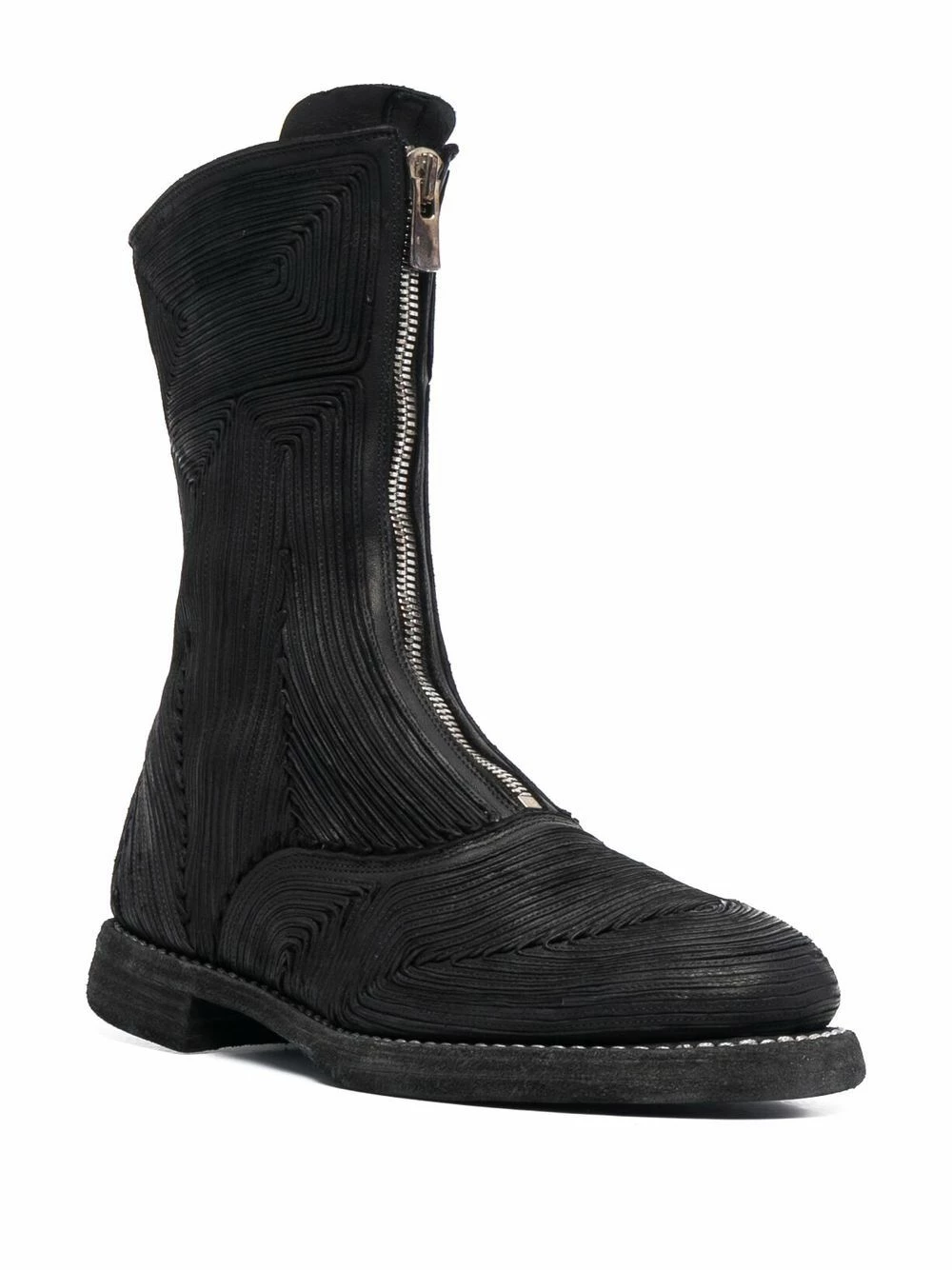 Bout rond, semelle plate, fermeture zippée devant. Couleur : noir. MatiÚre : cuir.