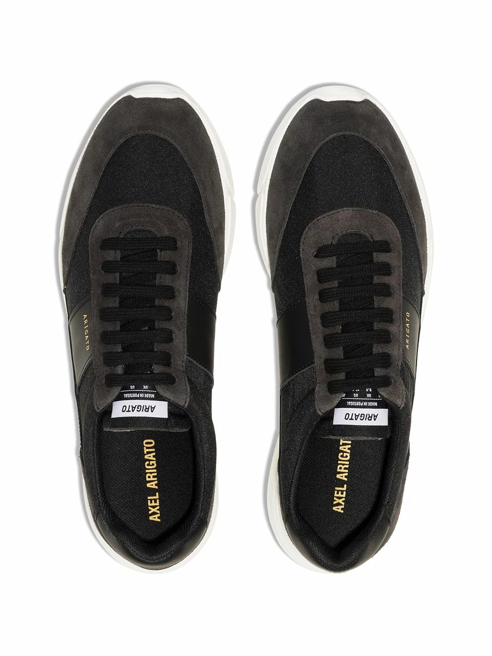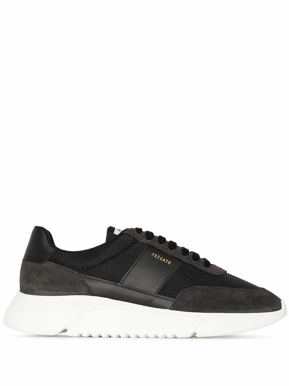 Design à empiècements, logo embossé sur le côté, languette à patch logo, semelle intérieure à logo, bout rond, fermeture à lacer sur le devant, semelle épaisse en caoutchouc. Couleur : noir. Matière : daim.