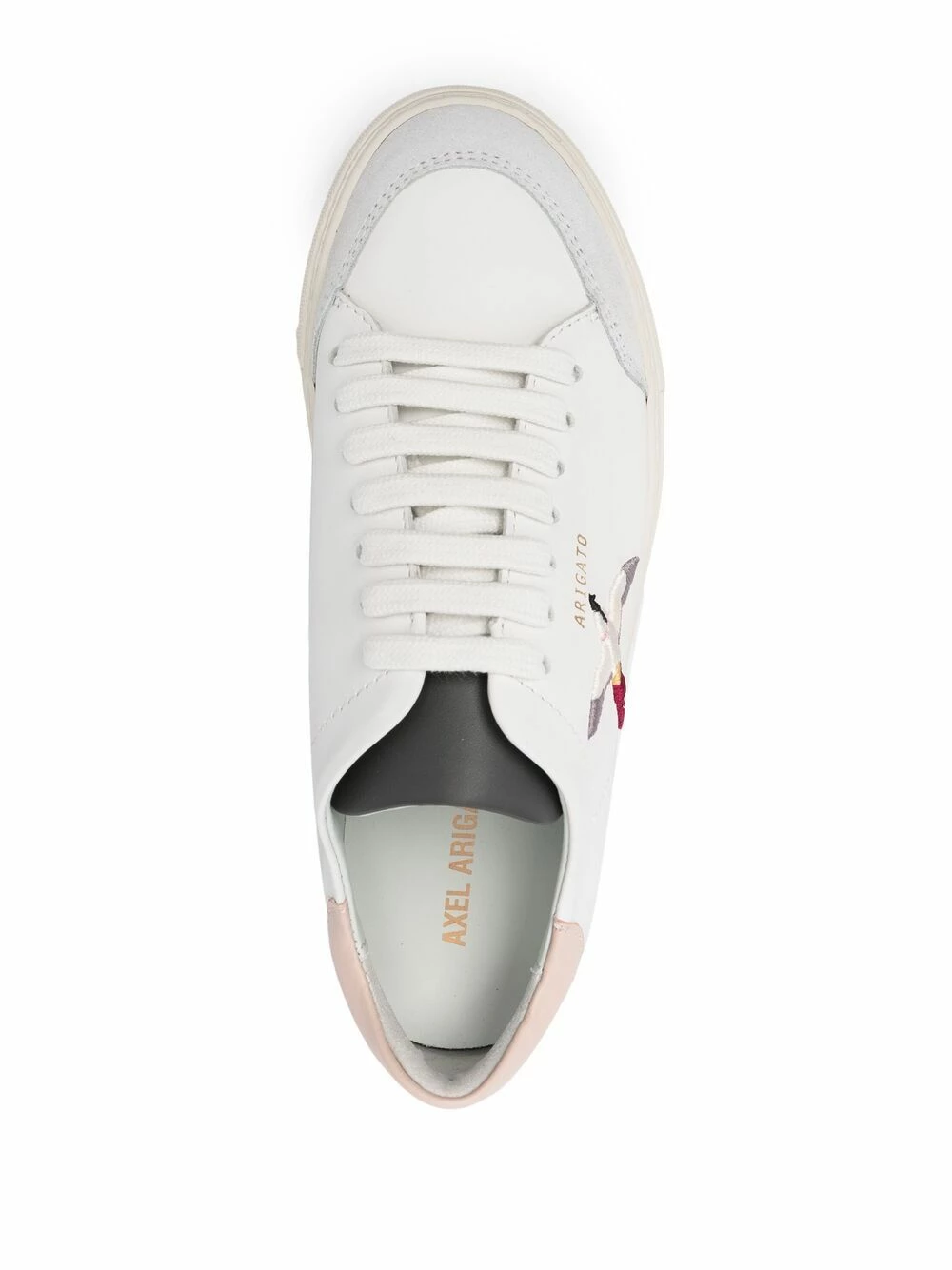 Broderies, logo imprimé sur le cÎté, empiÚcements contrastants, fermeture à lacer sur le devant, semelle intérieure griffée, semelle en caoutchouc. Couleur : blanc. MatiÚre : cuir.
