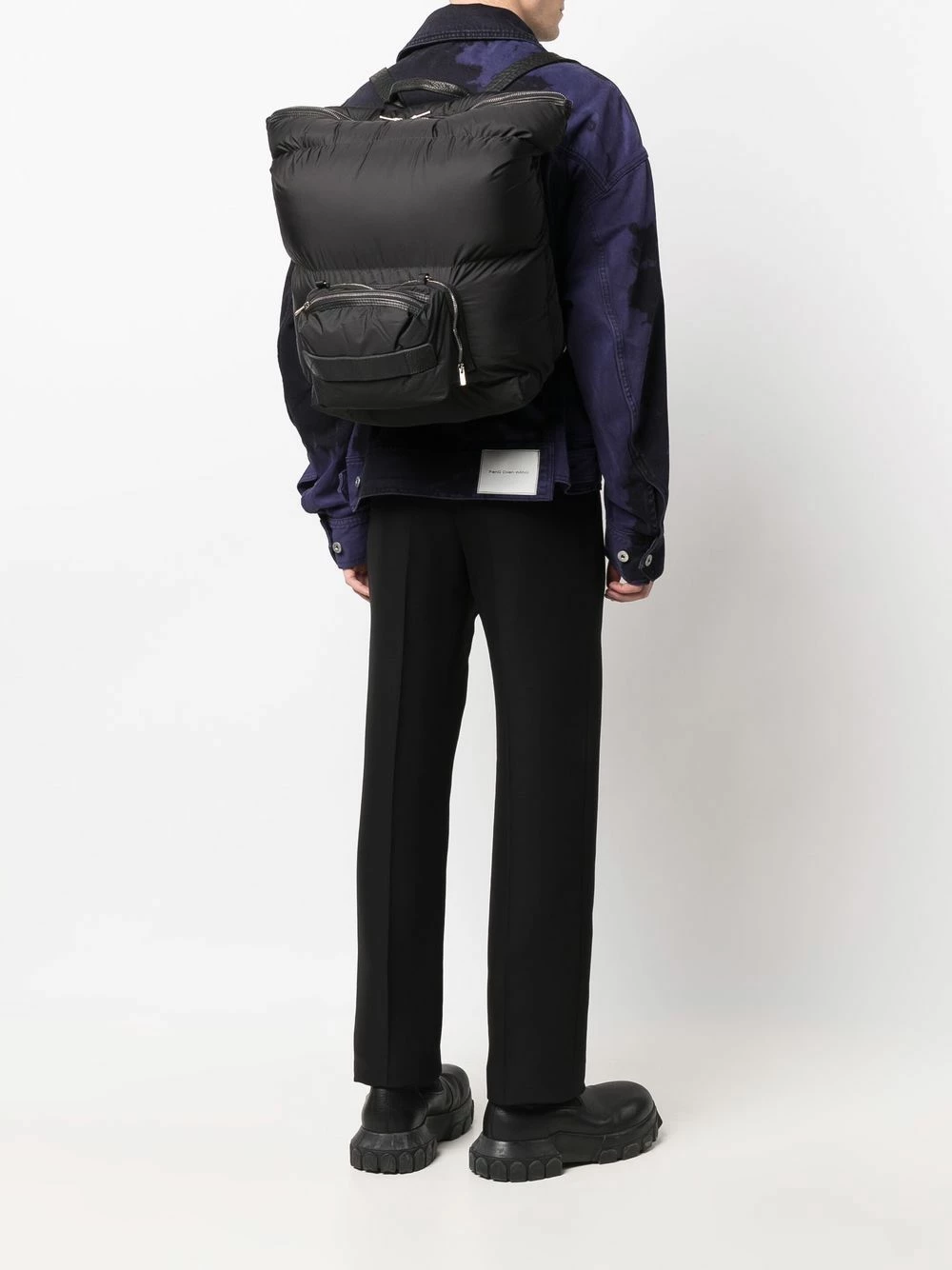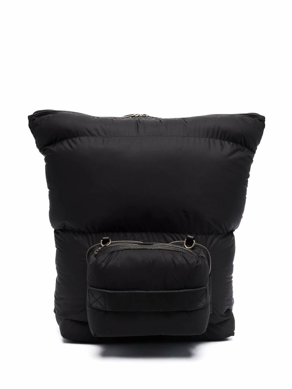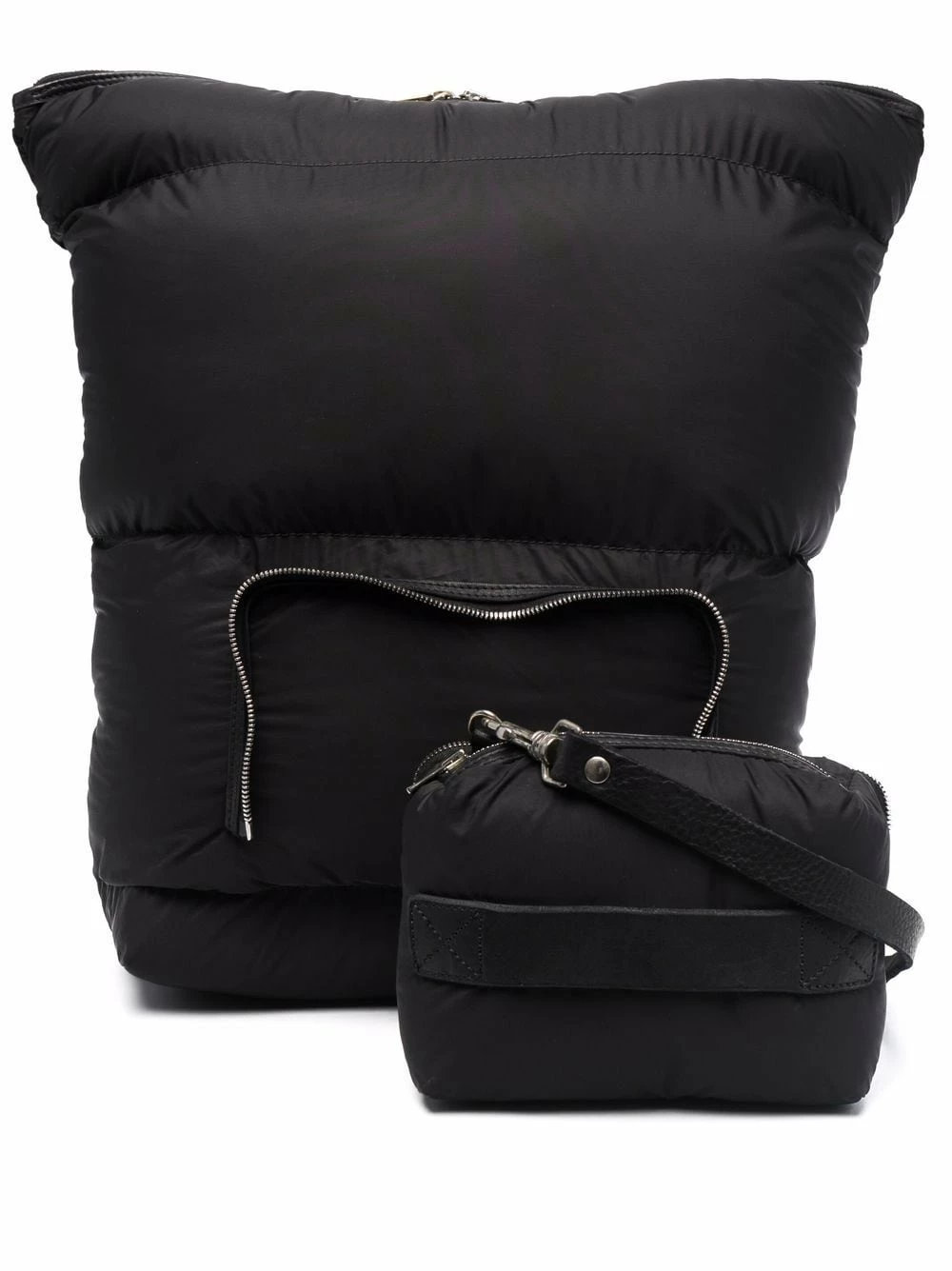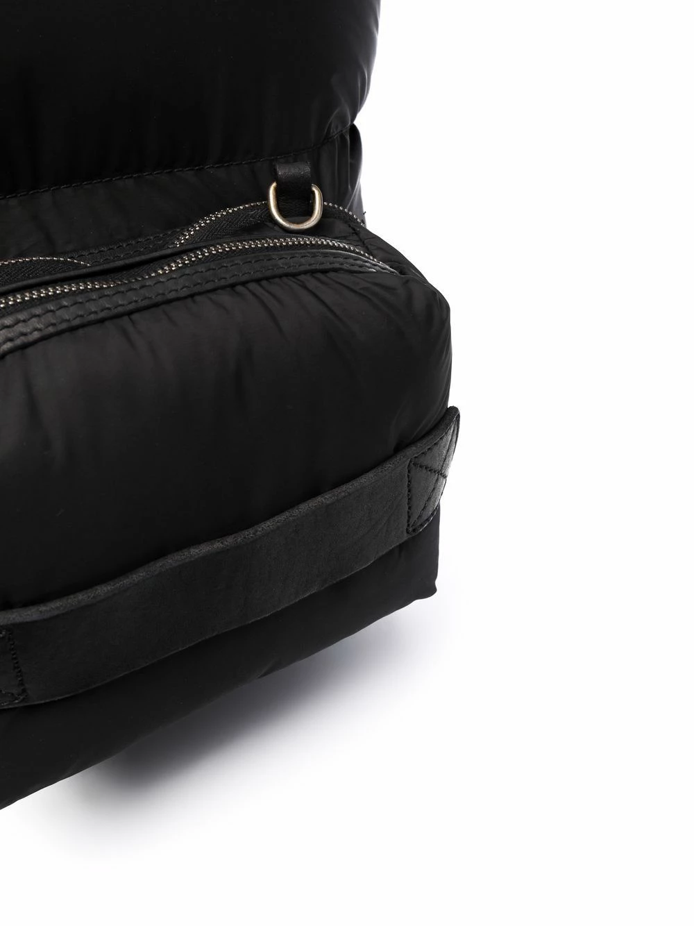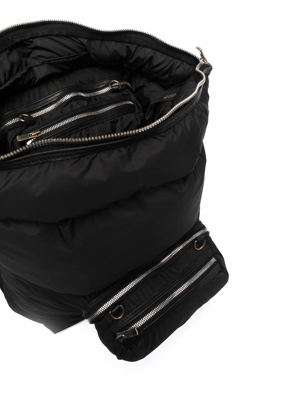 Liseré en cuir, anse arrondie, brides porté épaule ajustables, fermeture zippée sur le dessus, pochette détachable. Couleur : noir.