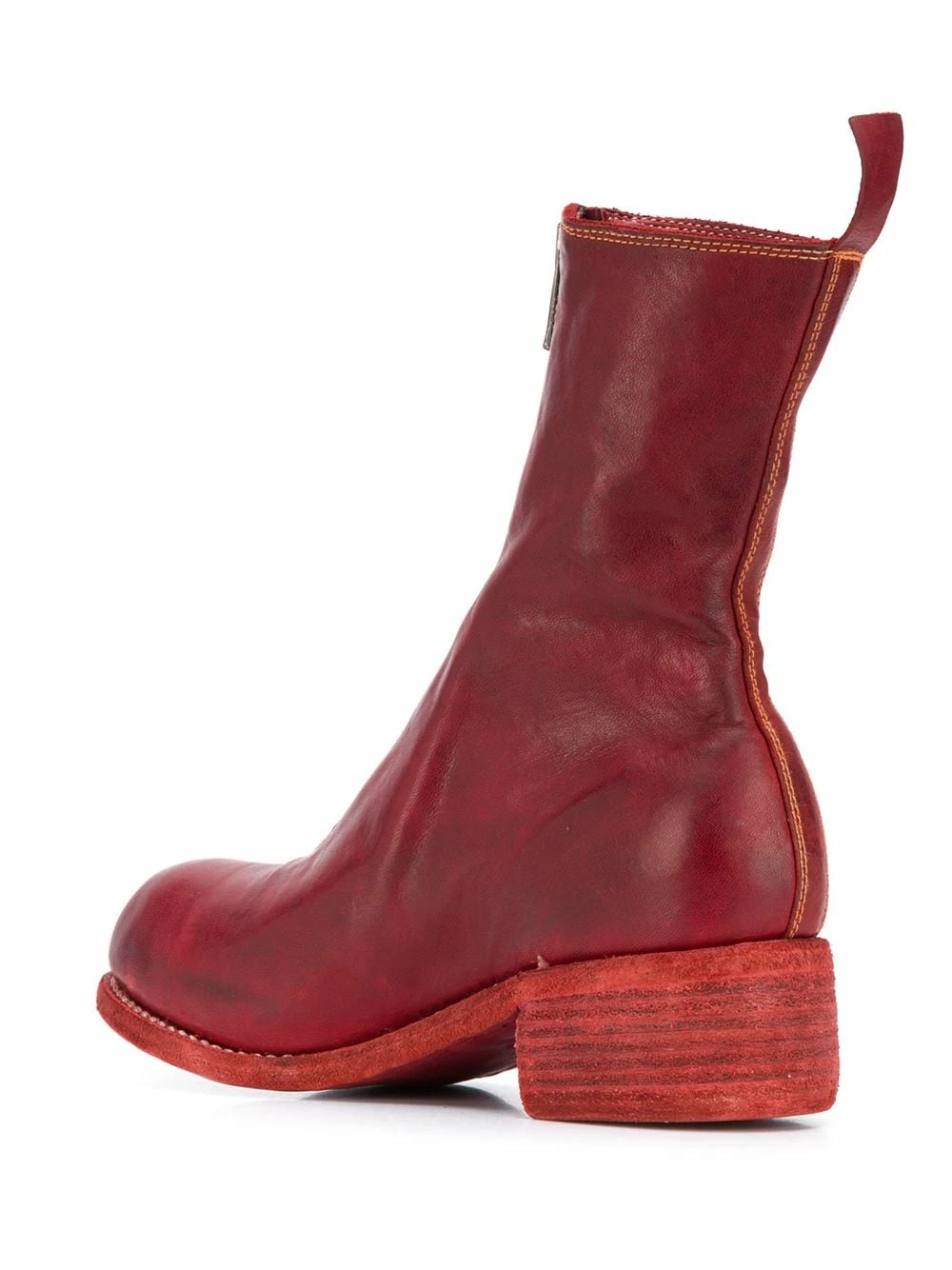 Bottes zippées en cuirs Guidi avec surface lisse à finition mate, languette arrière, fermeture zippée devant et petit talon épais. Couleur : rouge.