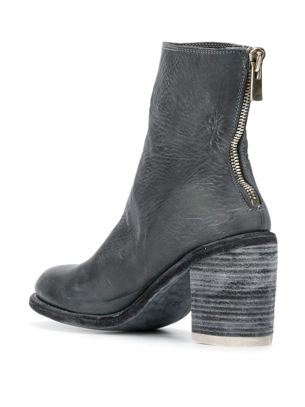 Bottines zippées en peau de cheval anthracite Guidi avec talon épais et fermeture zippée arriÚre.